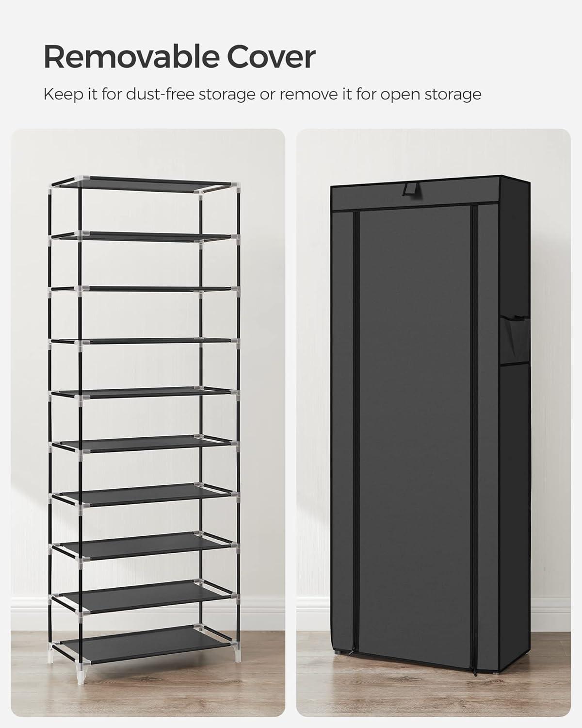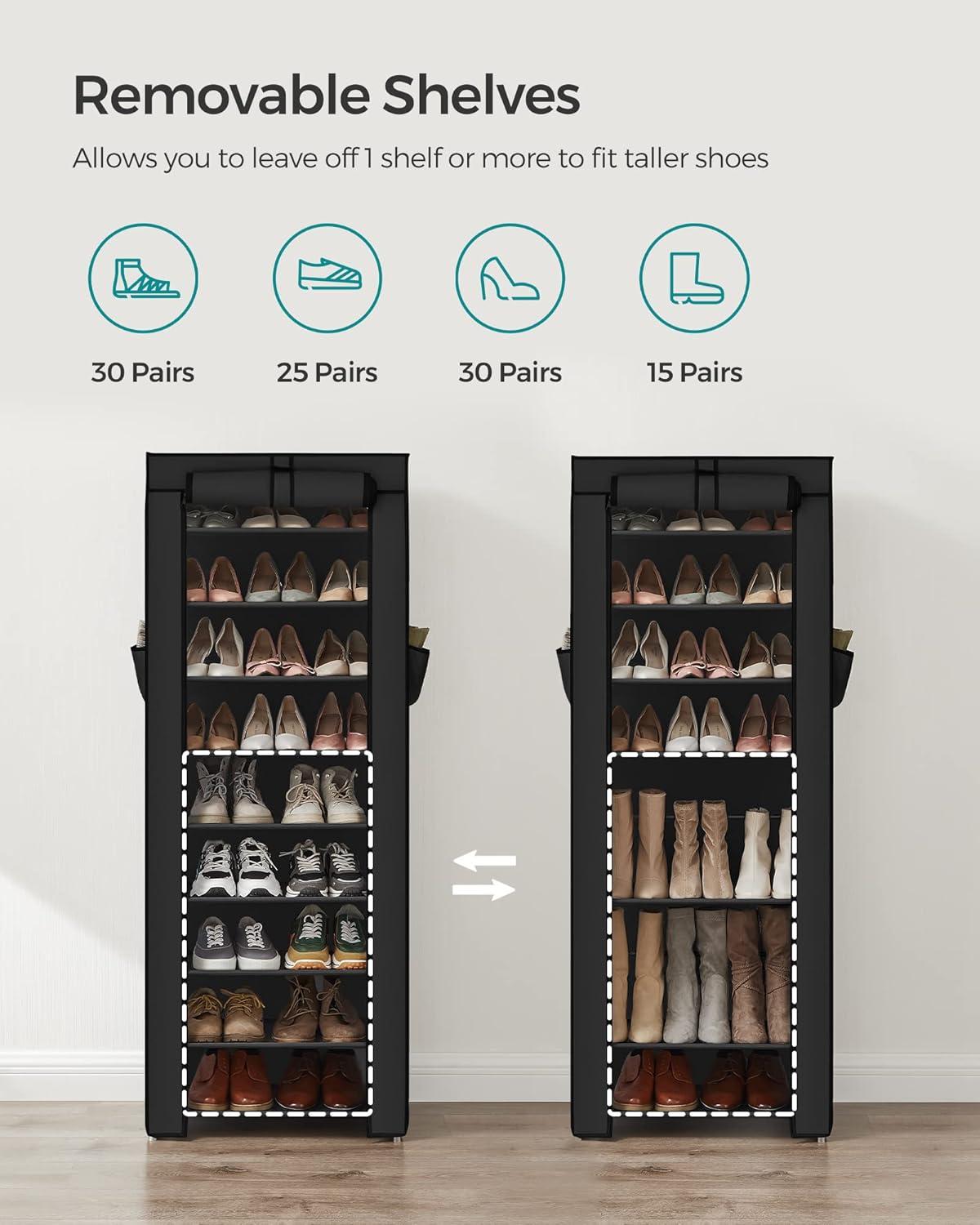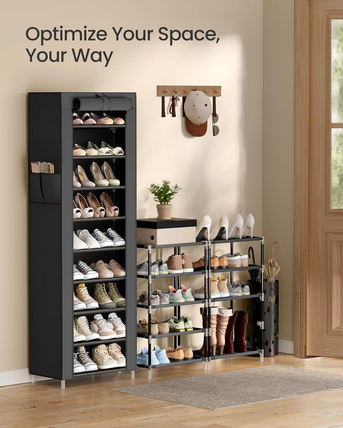 Dustproof Cover and Water-Resistant Shelf: You can zip up the cover of this shoe storage organizer to keep dust off your shoes; the fabric tiers are water-resistant, so just wipe clean with a damp cloth if they get dirty
