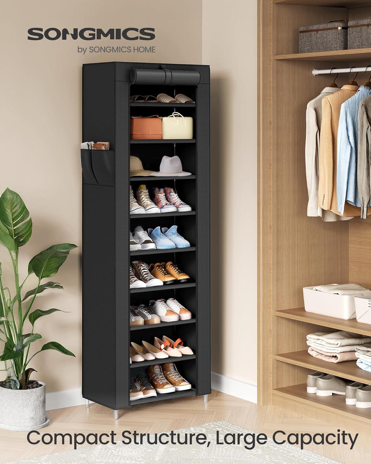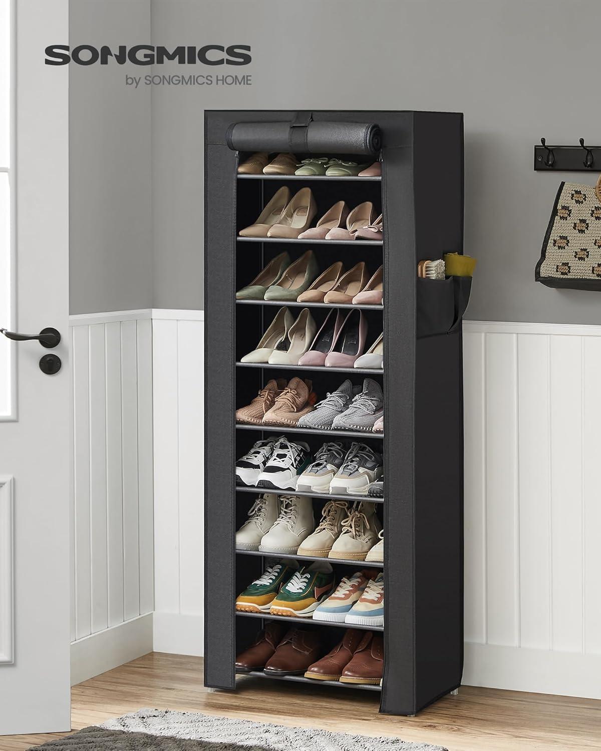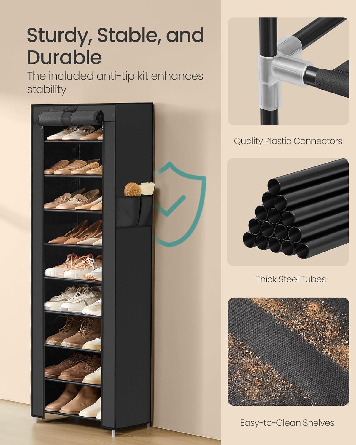 Dustproof Cover and Water-Resistant Shelf: You can zip up the cover of this shoe storage organizer to keep dust off your shoes; the fabric tiers are water-resistant, so just wipe clean with a damp cloth if they get dirty