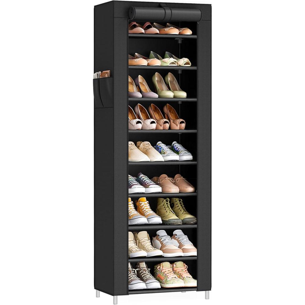 Holds Lots of Shoes: 20 pairs of shoes altogether! That’s the capacity of this 11’’ x 18.9’’ x 63’’ shoe rack, with each tier fitting 2 pairs of men’s shoes. So feel free to store your sneakers, flats, and your family’s house shoes in