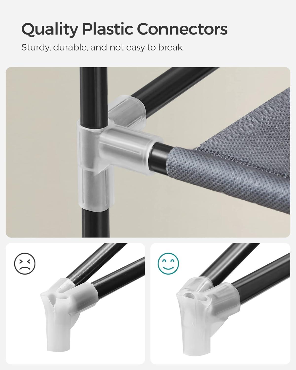 Sturdy Construction: Thanks to the robust metal tubes and premium reinforced plastic connectors, each tier of this robust shoe organizer supports up to 6.6 lb, giving your shoes a stable, reliable home