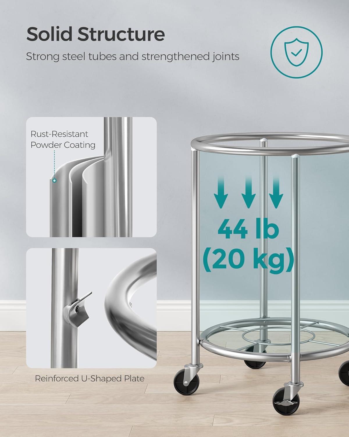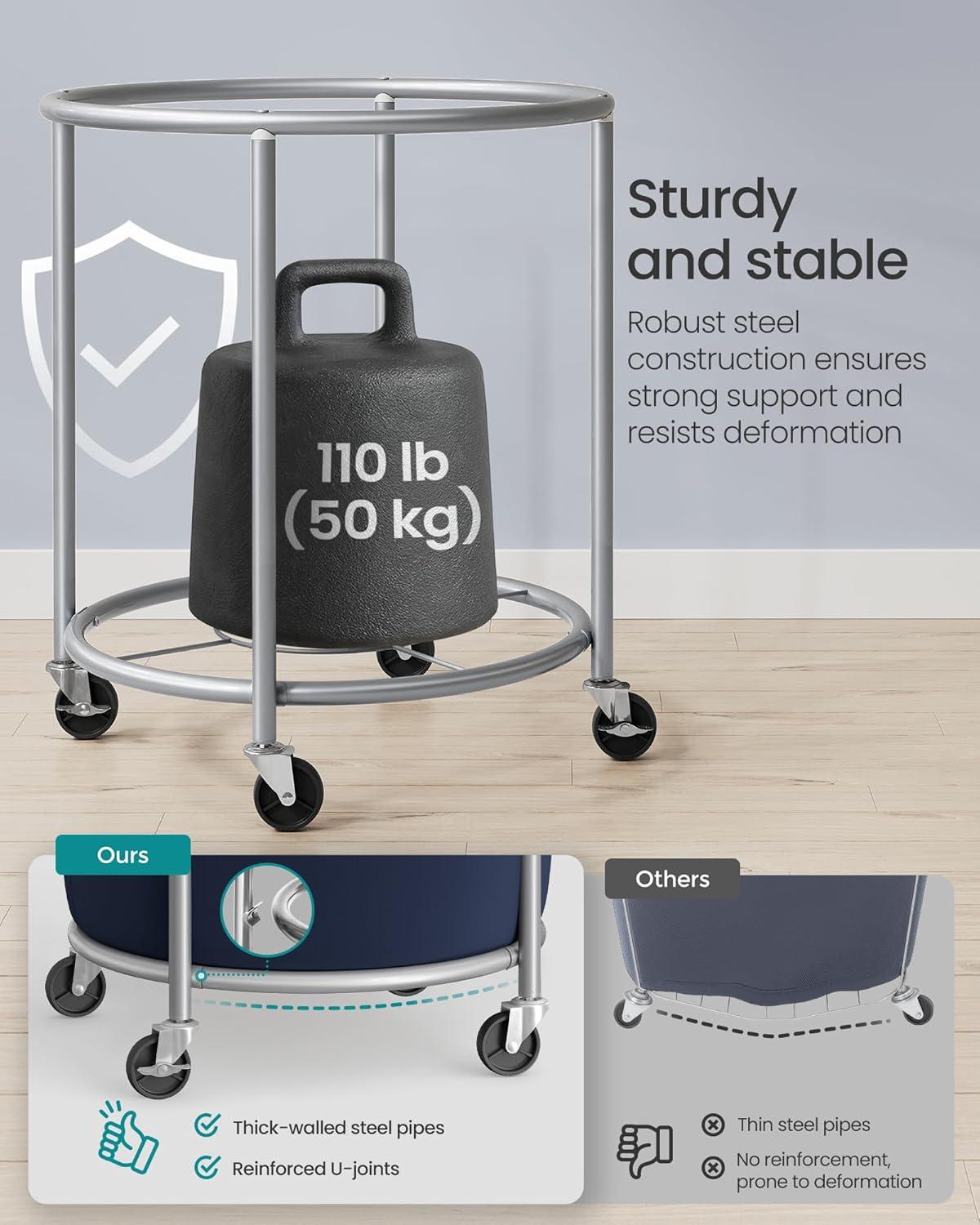 Stable and Durable: With sturdy steel tubes and reinforced U-shaped plates, this laundry organizer boasts a solid structure that can support up to 120 lb. The powder coating makes the tubes rust-resistant for greater durability