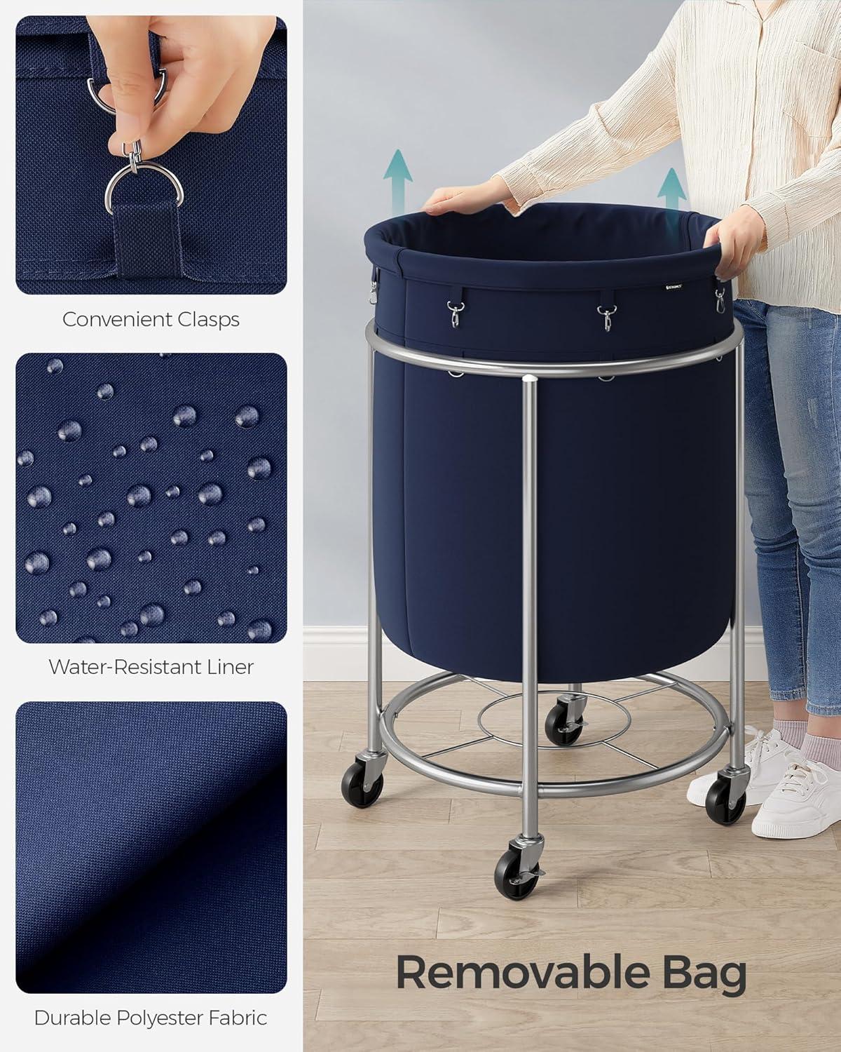 Extra Large Capacity: With a size of 25.6″Dia. x 31.9″H, this laundry basket on casters has a large capacity for lots of clothes and bedding sheets, letting you easily do all of your laundry in a single trip