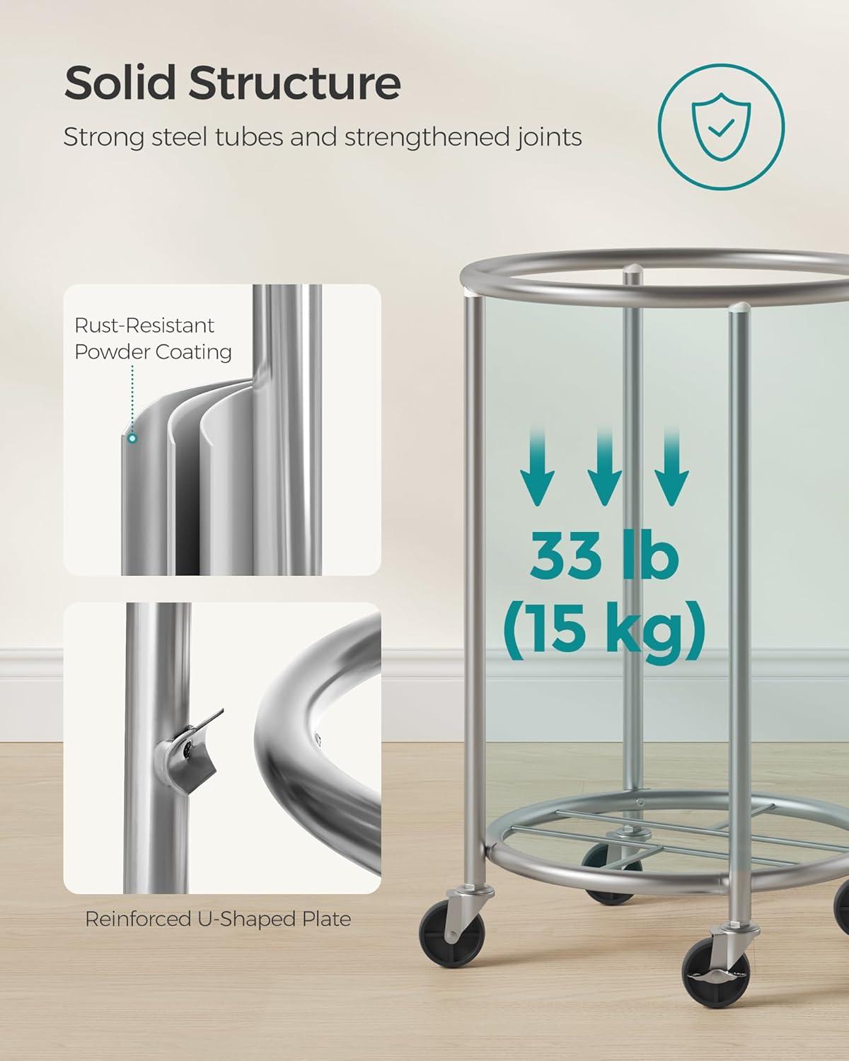 imageSONGMICS 635Gallon 240 L Laundry Basket with Wheels Rolling Round HeavyDuty Laundry Hamper Cart with Steel Frame and Removable Bag 2 Locking Wheels Cream White and Metallic Silver URLS012W01Gray  Metallic Silver