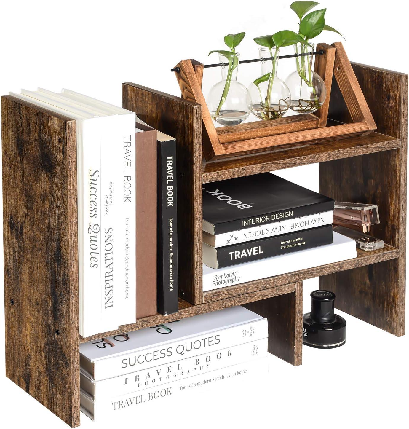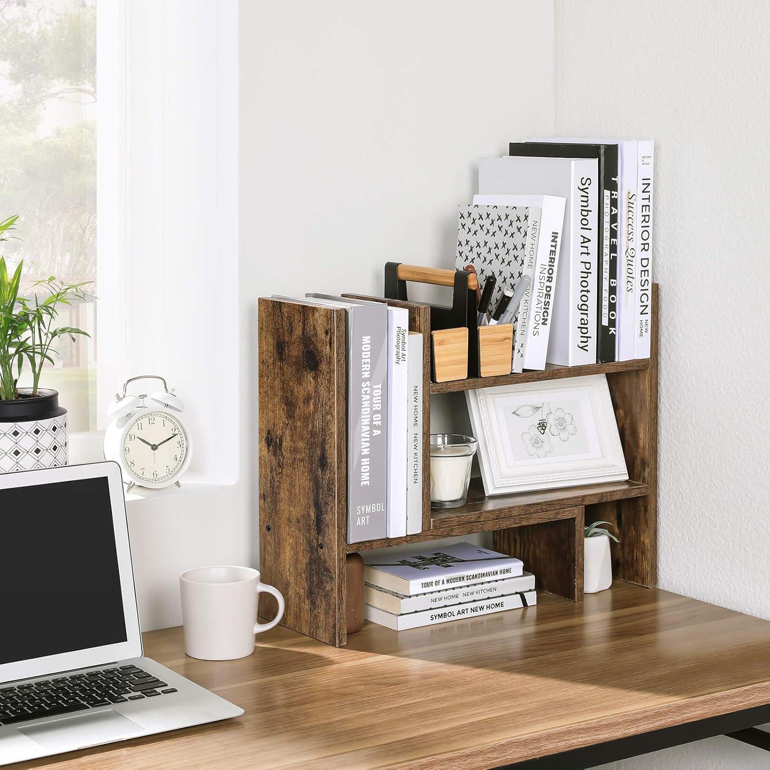 SONGMICS Bamboo File Organizer Paper Sorter with 5 Adjustable Shelves Top Storage Compartments Natural UOFS44Y(Desktop Organizer)