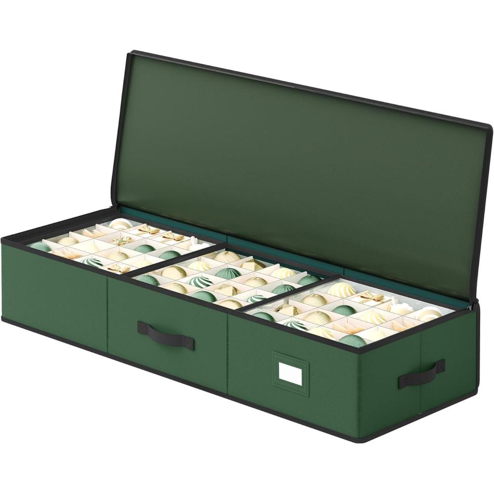 【FEEL THE HOLIDAY SPIRIT】Featuring a vibrant forest green hue, this Christmas ornament storage box effortlessly enhances your holiday ambiance, spreading happiness to every corner it adorns