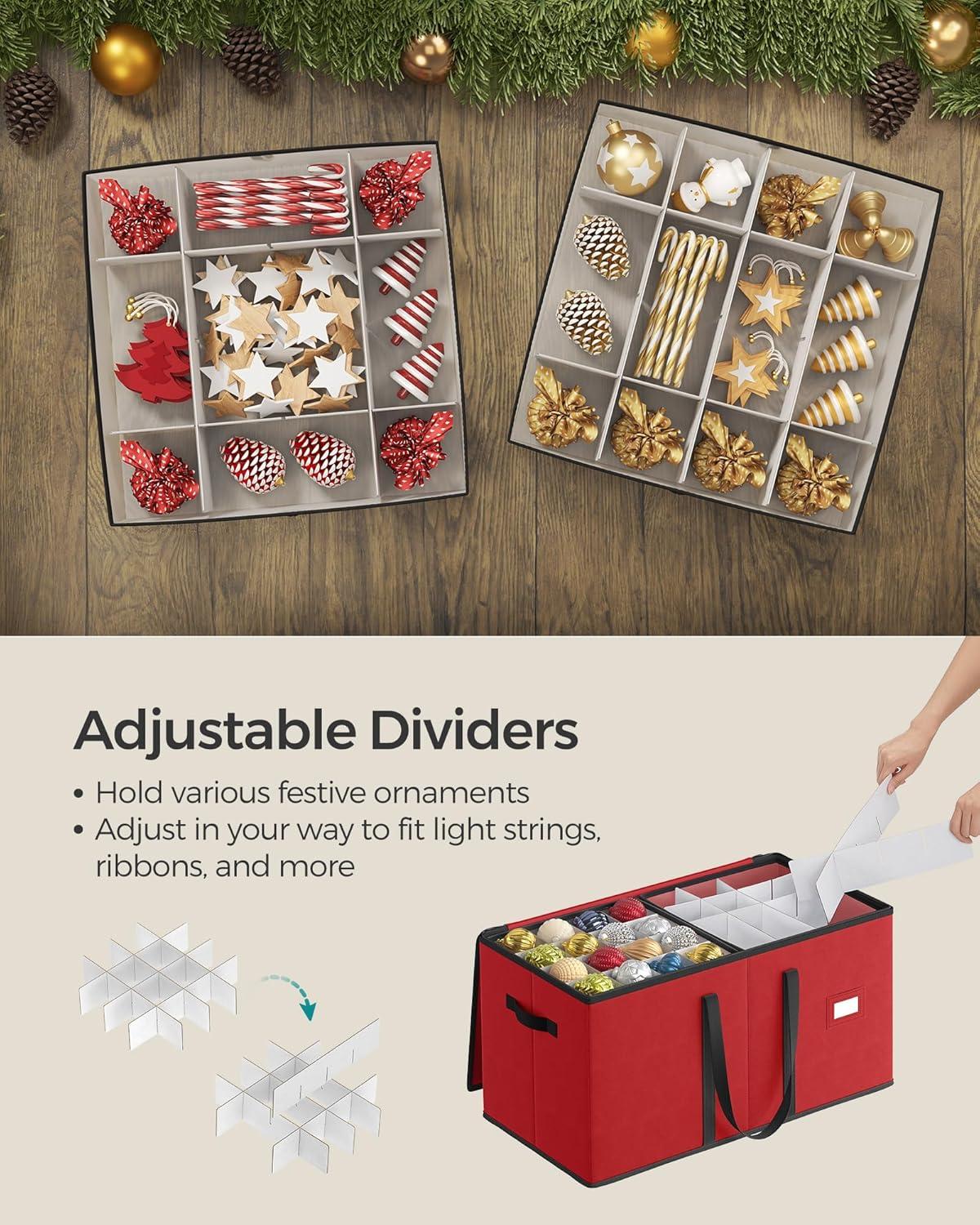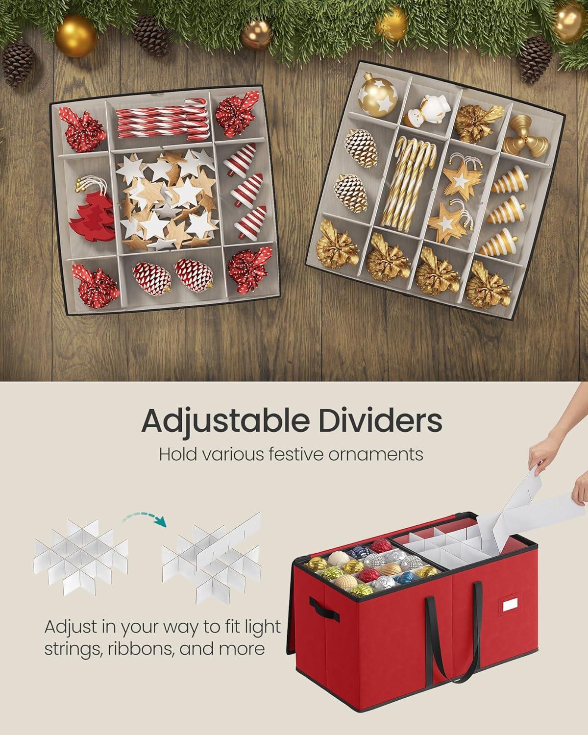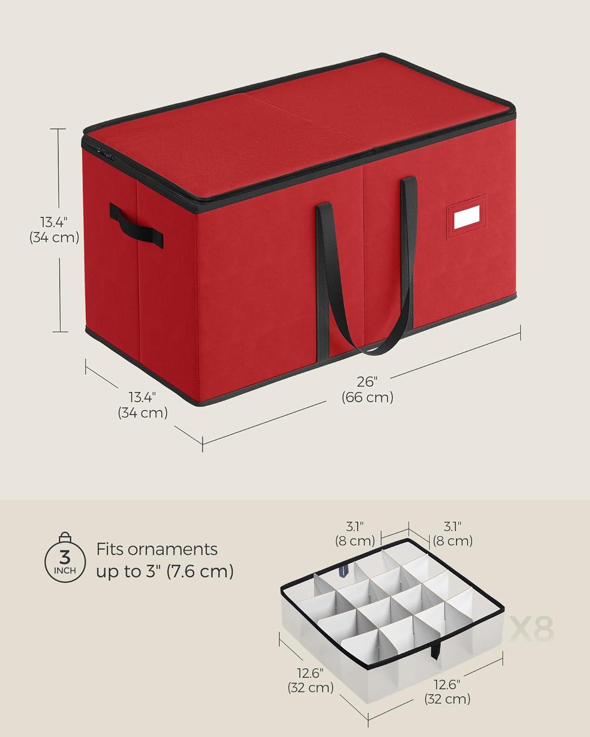 SONGMICS Christmas Ornament Storage Box, Dual Zippers, Stackable Christmas Storage Container with Lid, 8 Trays, 600D Oxford, 3-Inch 128 Slots, Dove Gray URFB035G01(Cherry Red)
