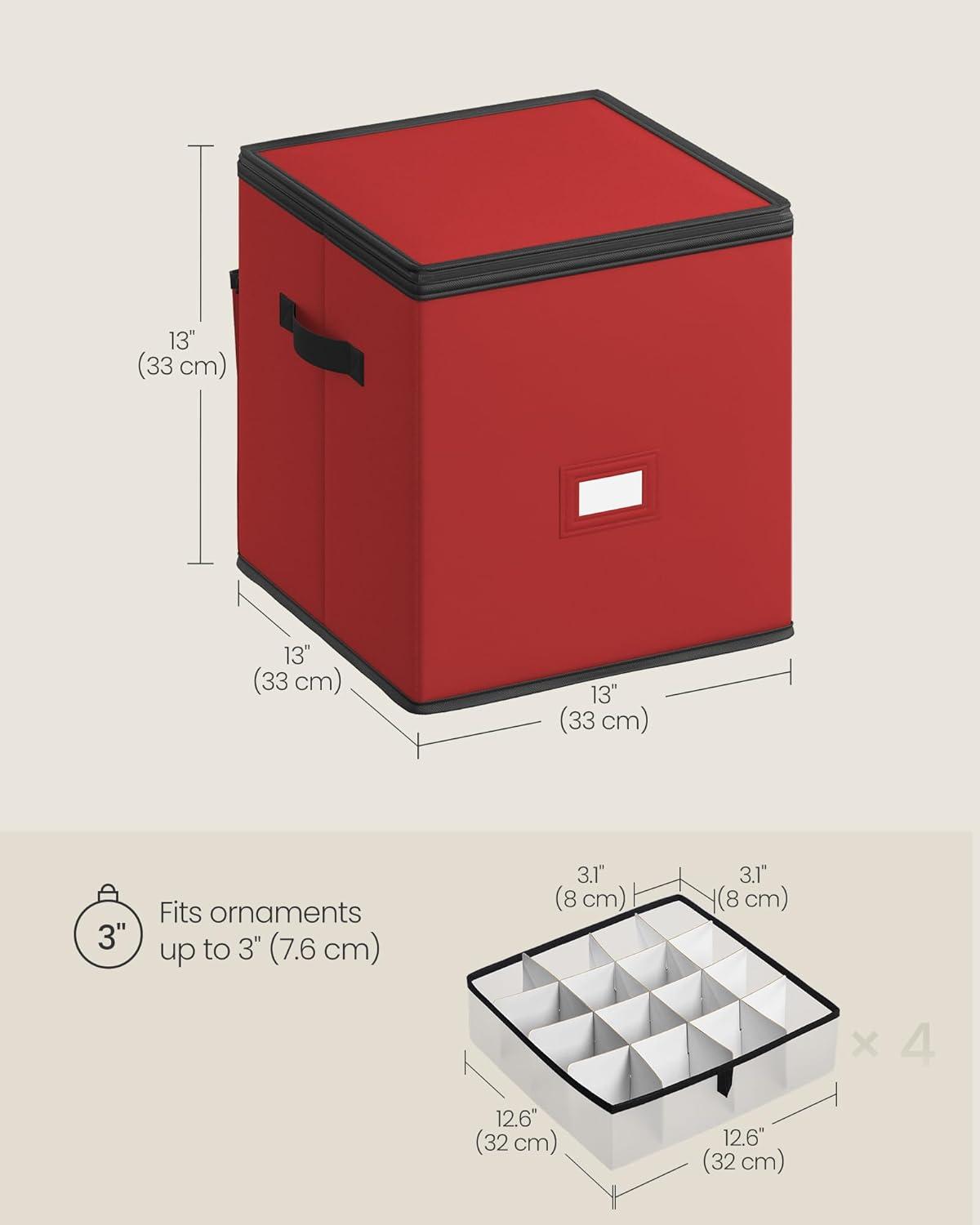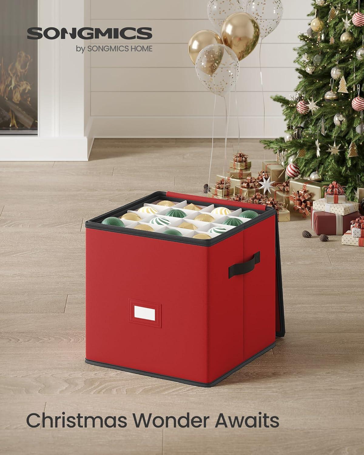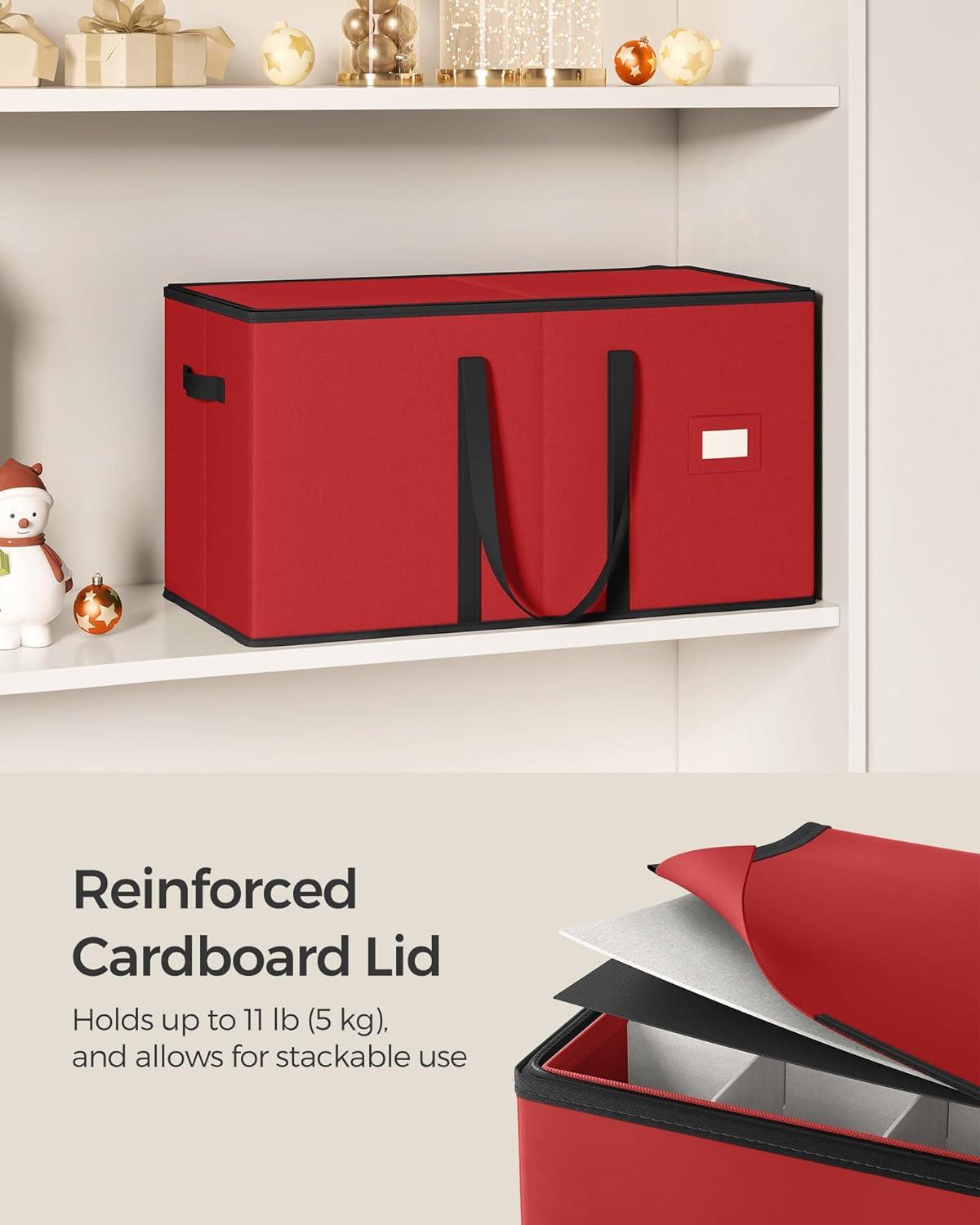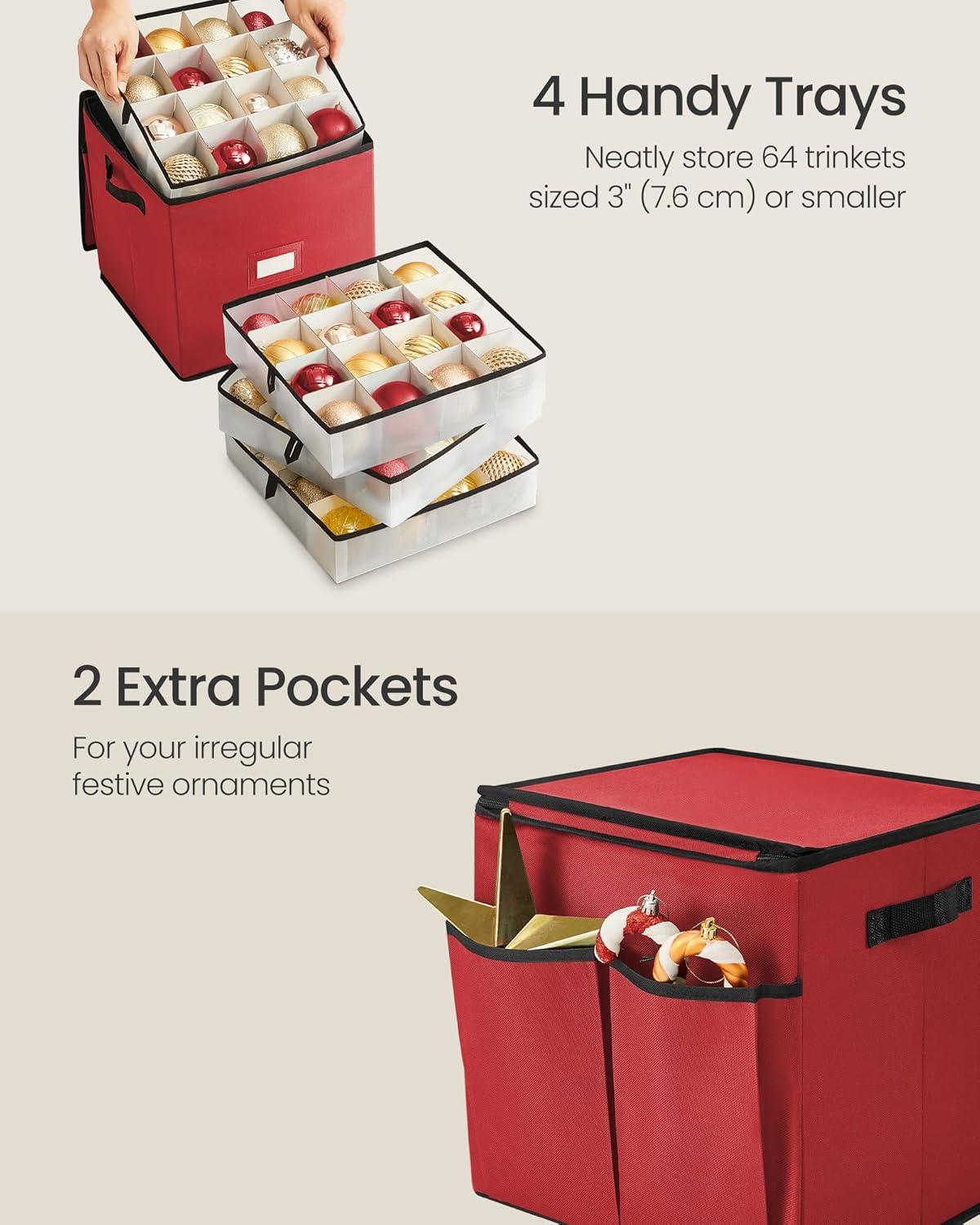 imageSONGMICS Christmas Ornament Storage Box Dual Zippers Stackable Christmas Storage Container with Lid 8 Trays 600D Oxford 3Inch 128 Slots Dove Gray URFB035G01Cherry Red