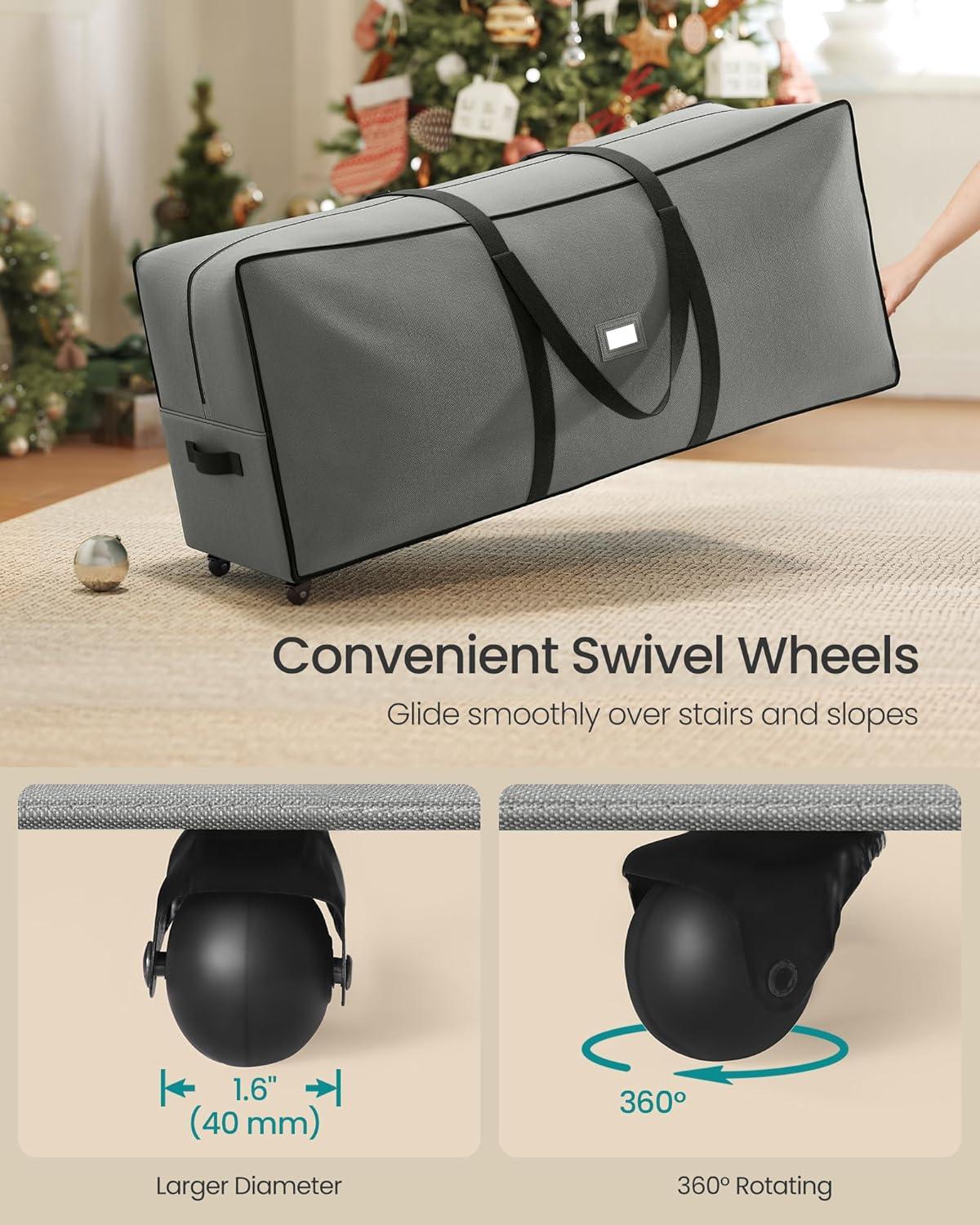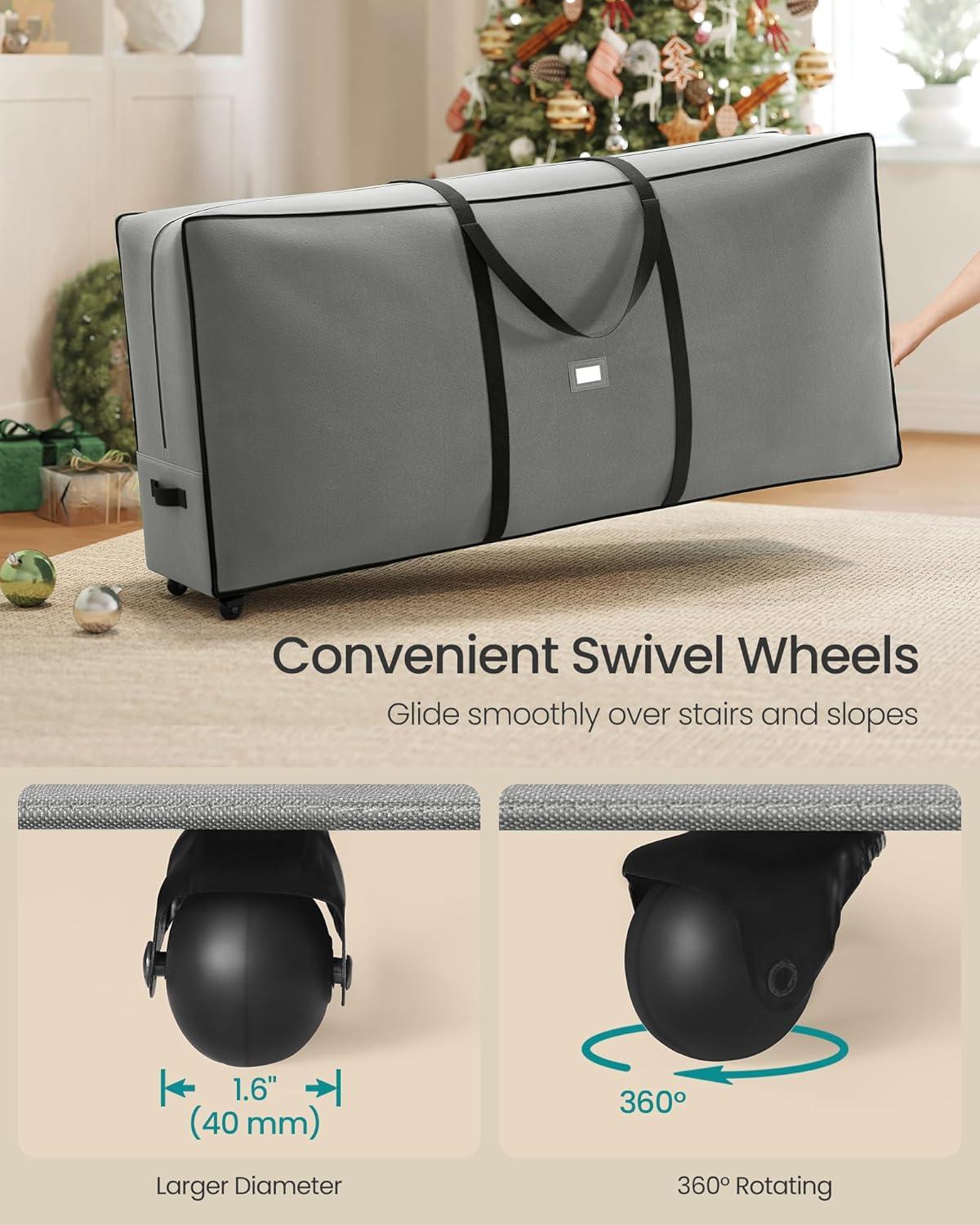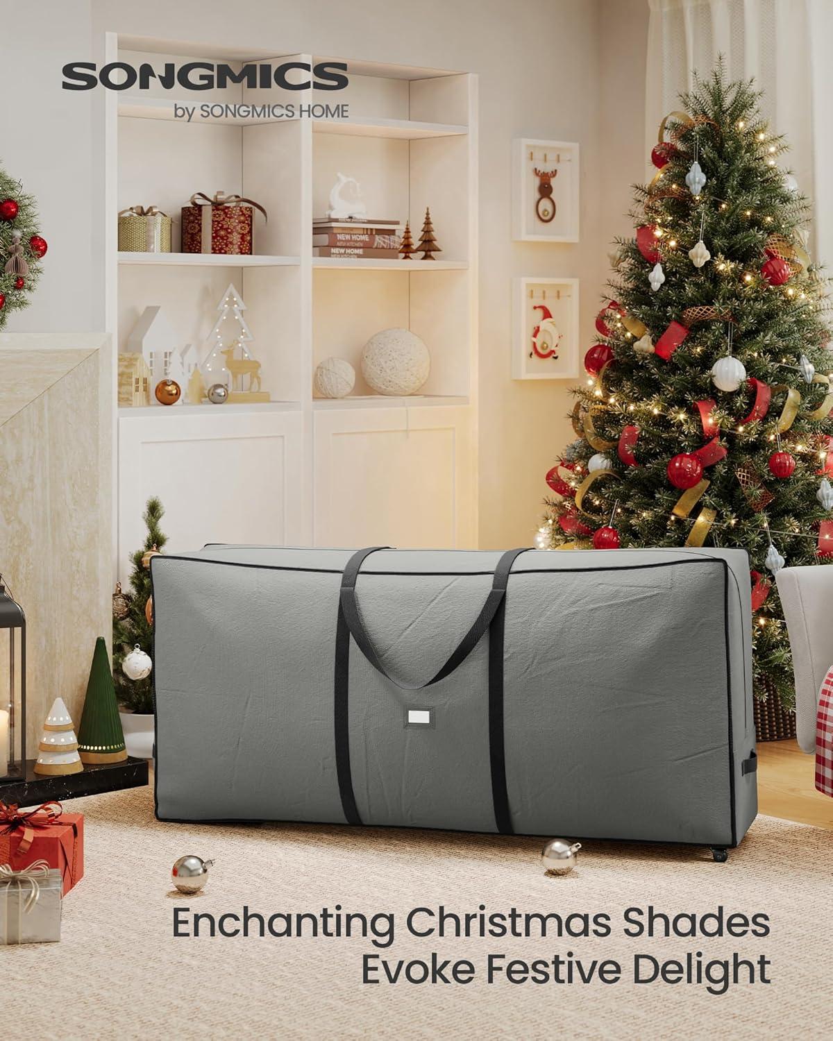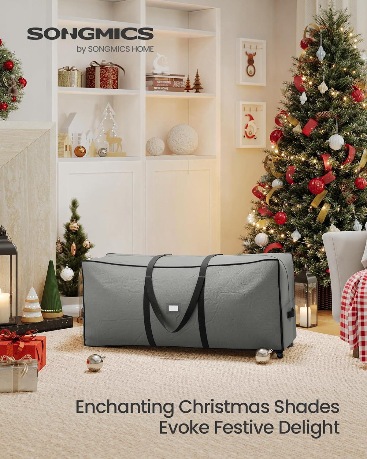 SONGMICS Christmas Tree Storage Bag with 1.6-Inch Wheels, Rolling Storage Bag, up to 9 ft, For Disassembled Holiday Tree, Length-Adjustable Handles, 600D Oxford Fabric, Dove Gray URXS004G01(Dove Gray)