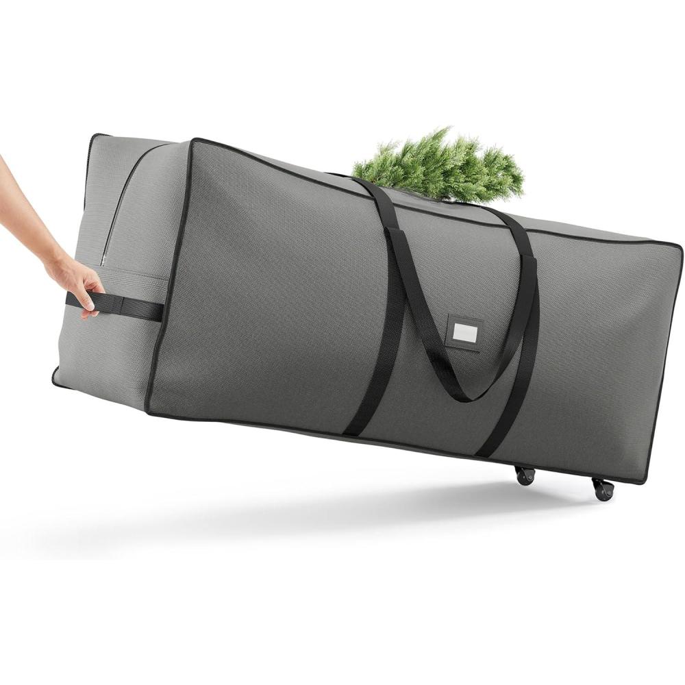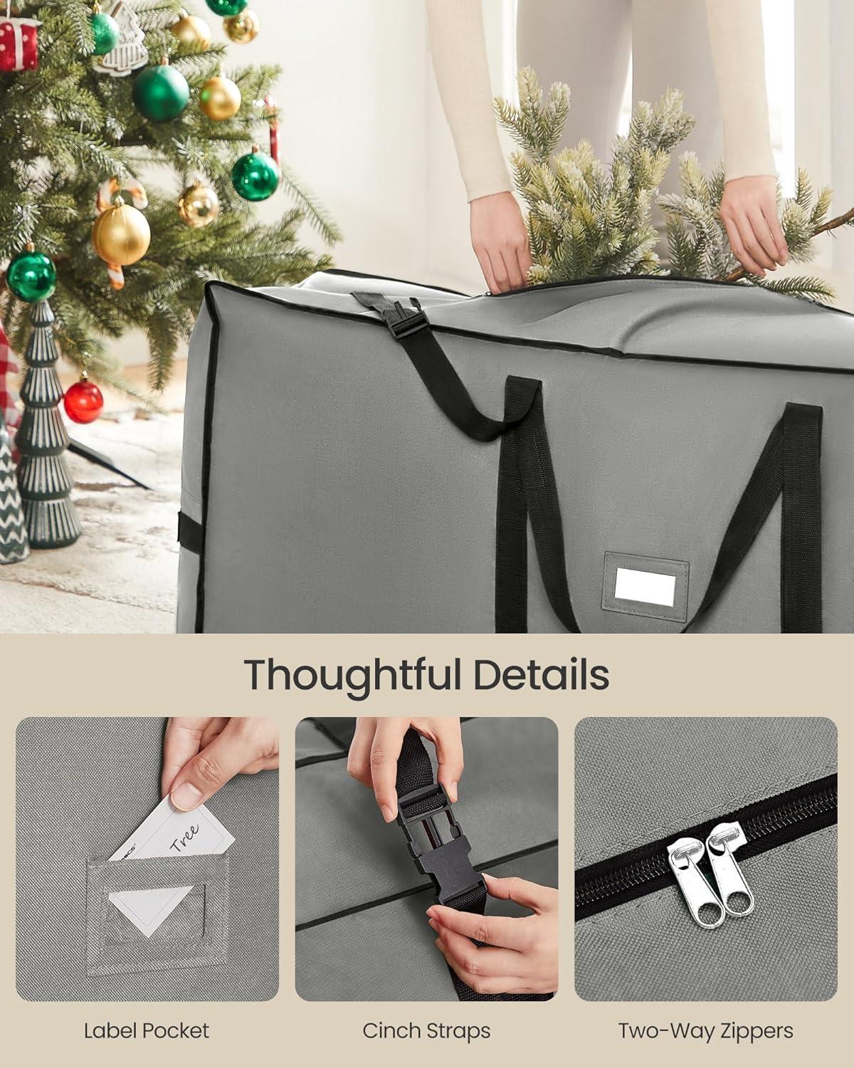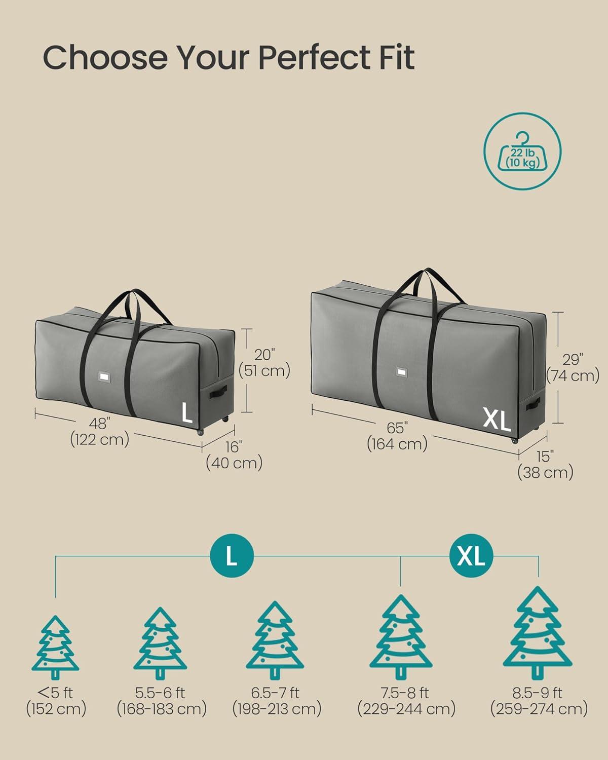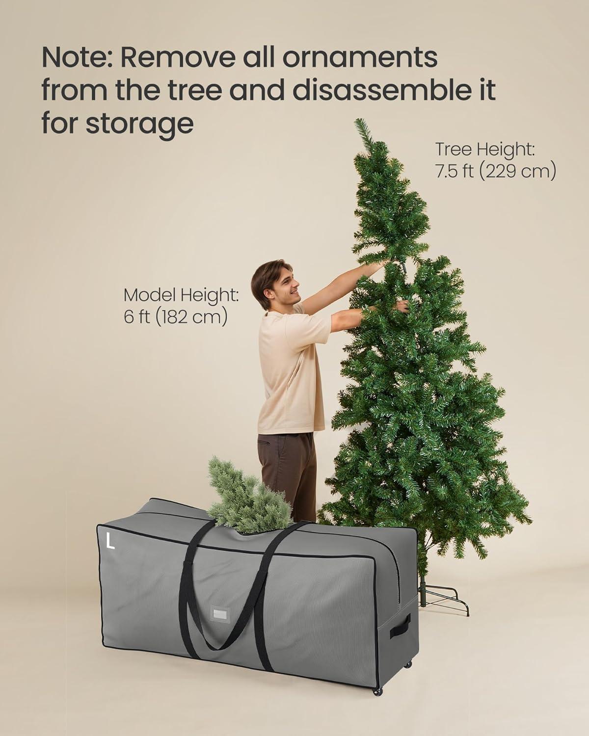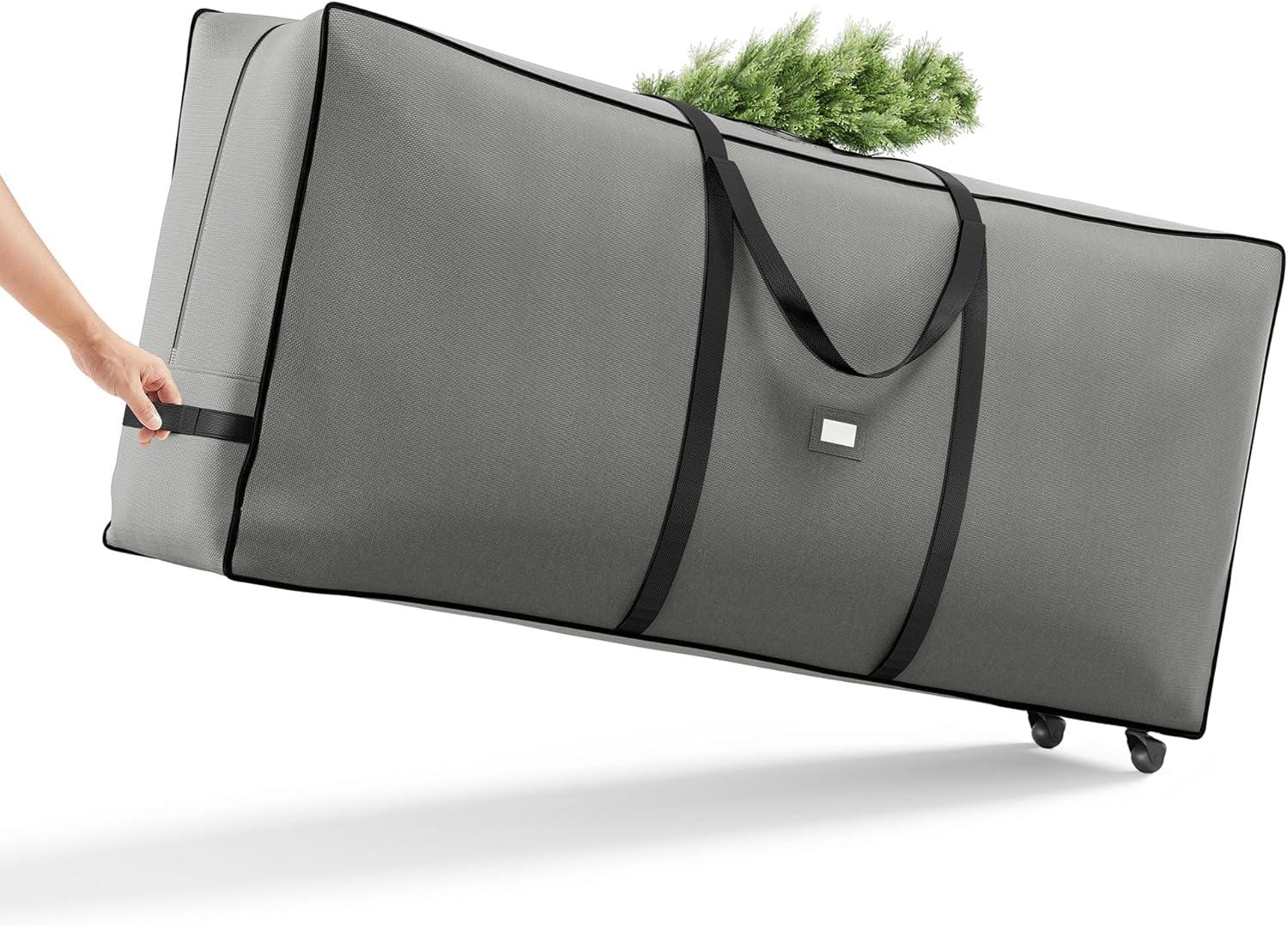 SONGMICS Christmas Tree Storage Bag with 1.6-Inch Wheels, Rolling Storage Bag, up to 9 ft, For Disassembled Holiday Tree, Length-Adjustable Handles, 600D Oxford Fabric, Dove Gray URXS004G01(Dove Gray)