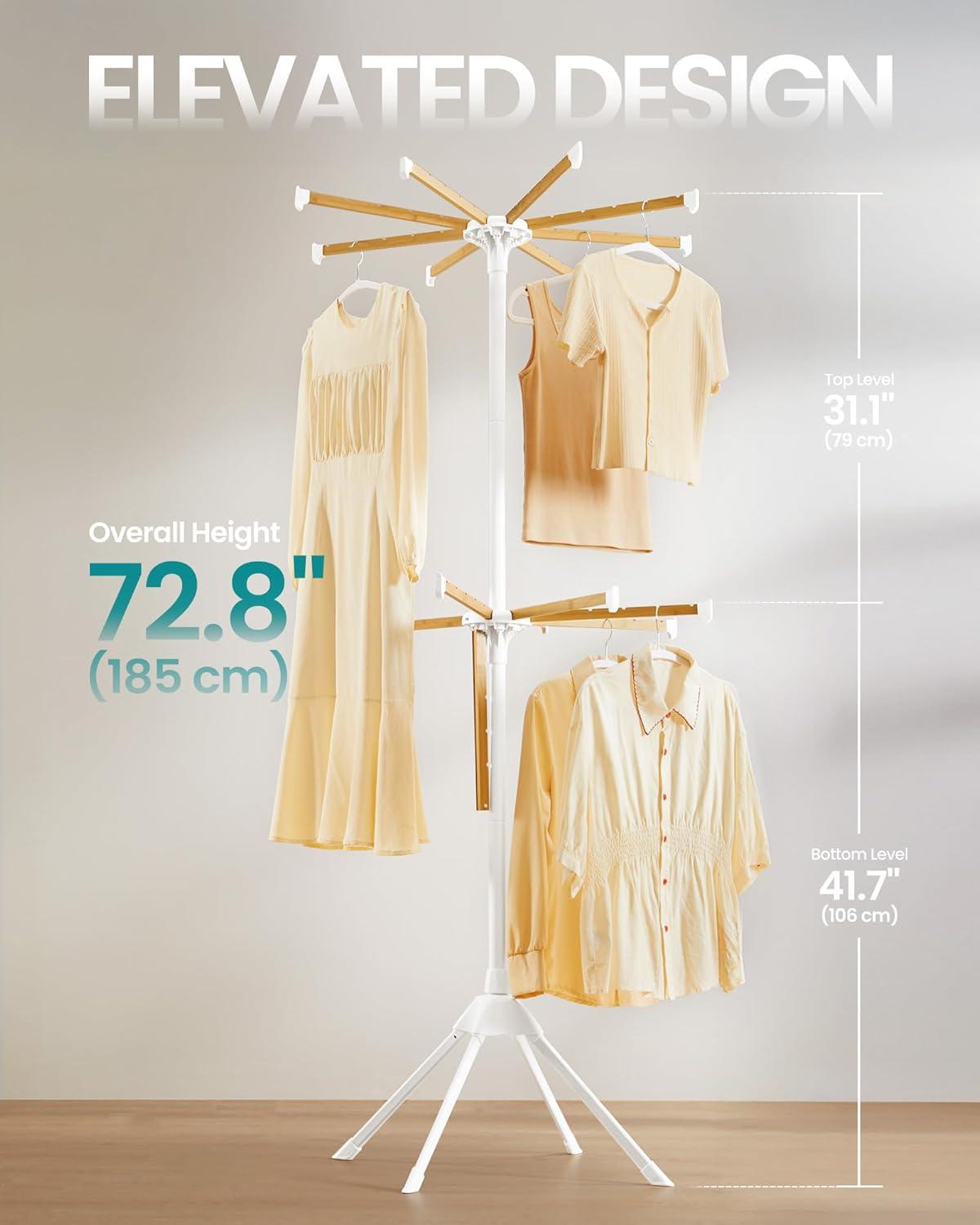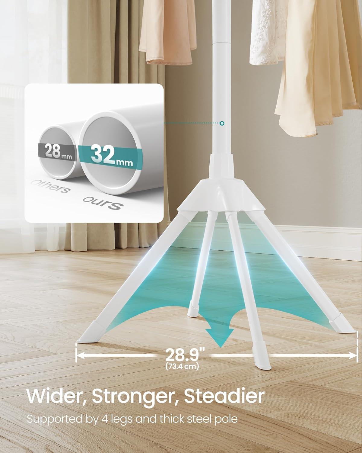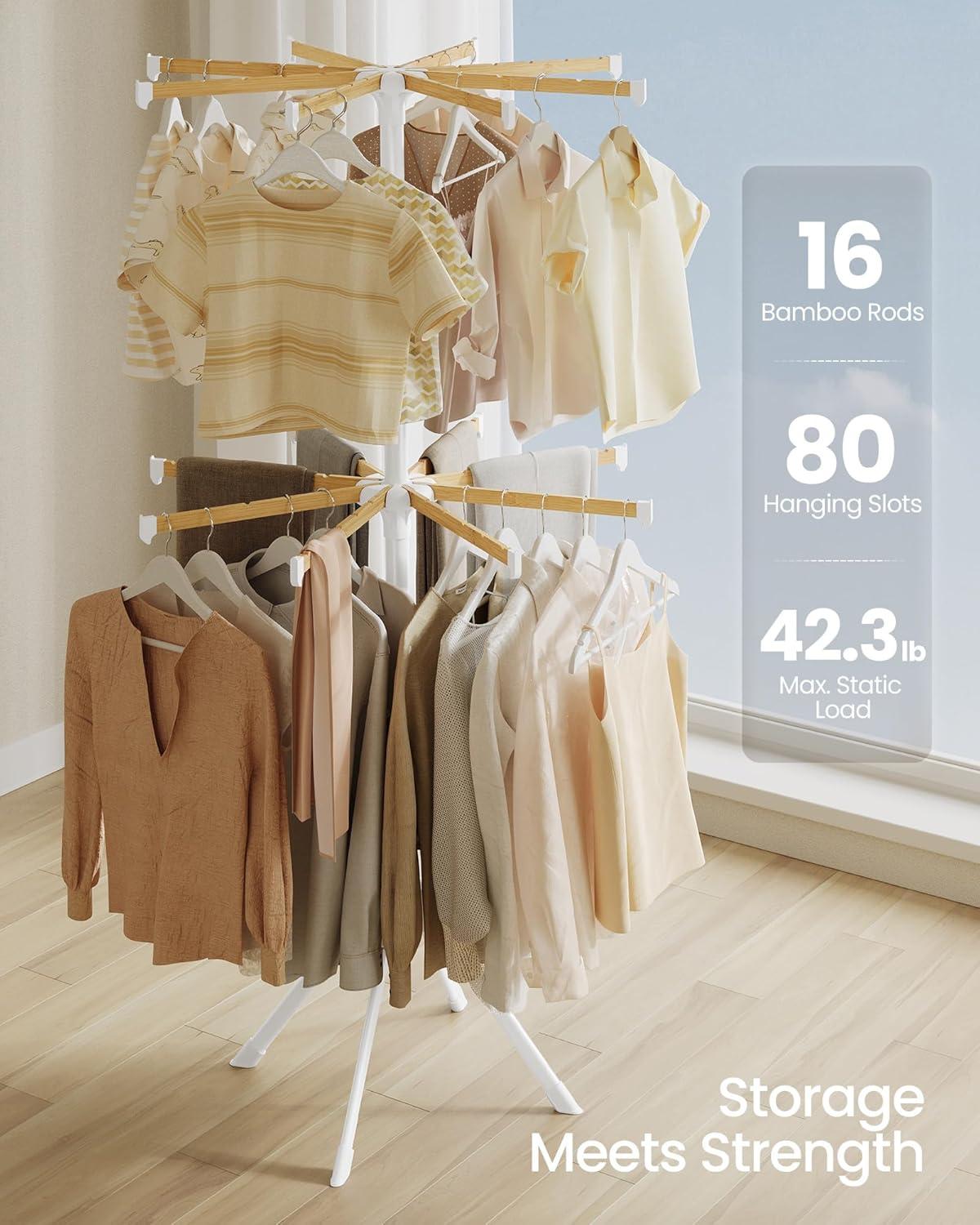 Stable and Durable: Featuring bamboo drying rods and a sturdy steel pole, this airer supports up to 17.6 lb. Its 4-leg design means it won’t easily wobble or tip over like those 3-legged ones