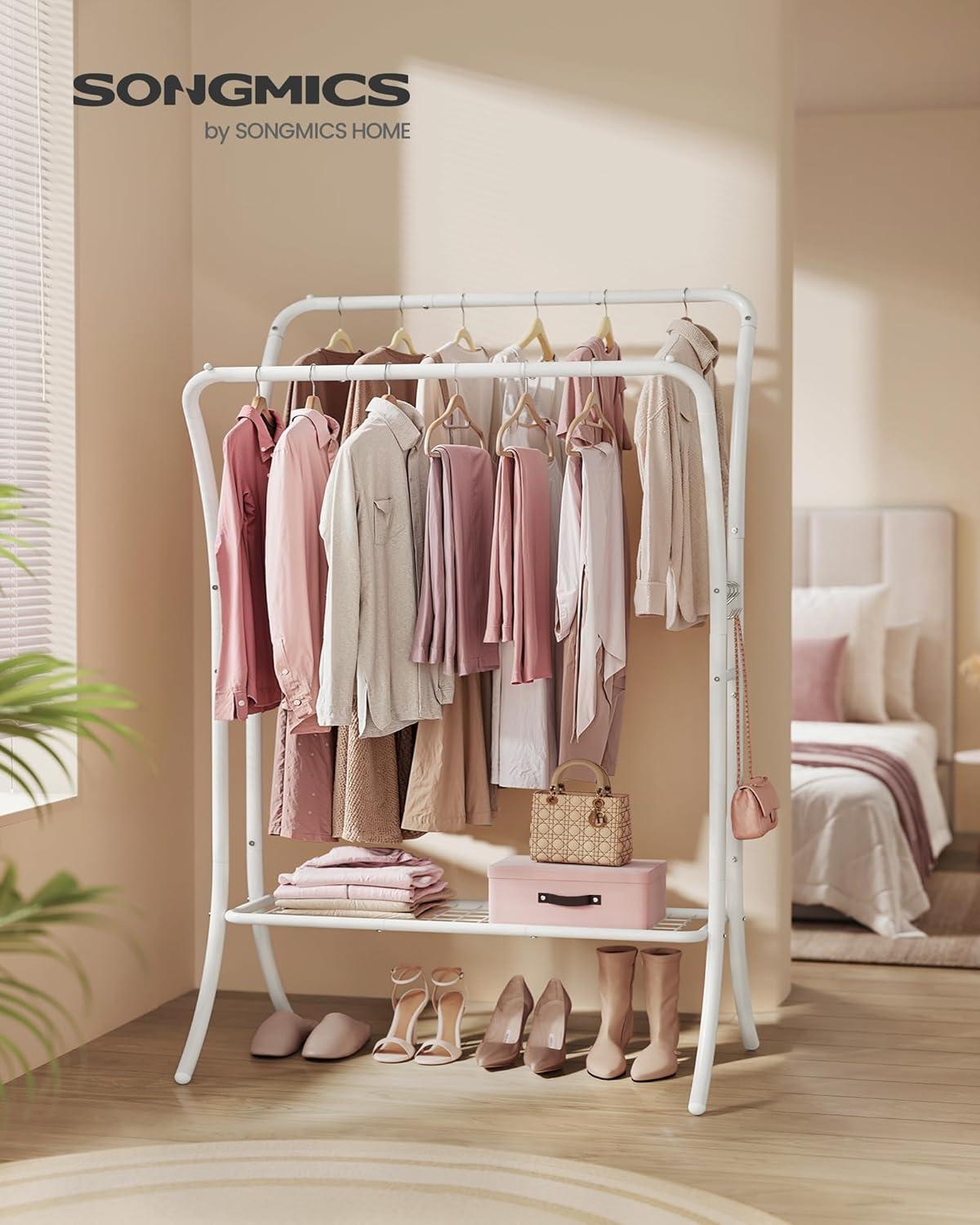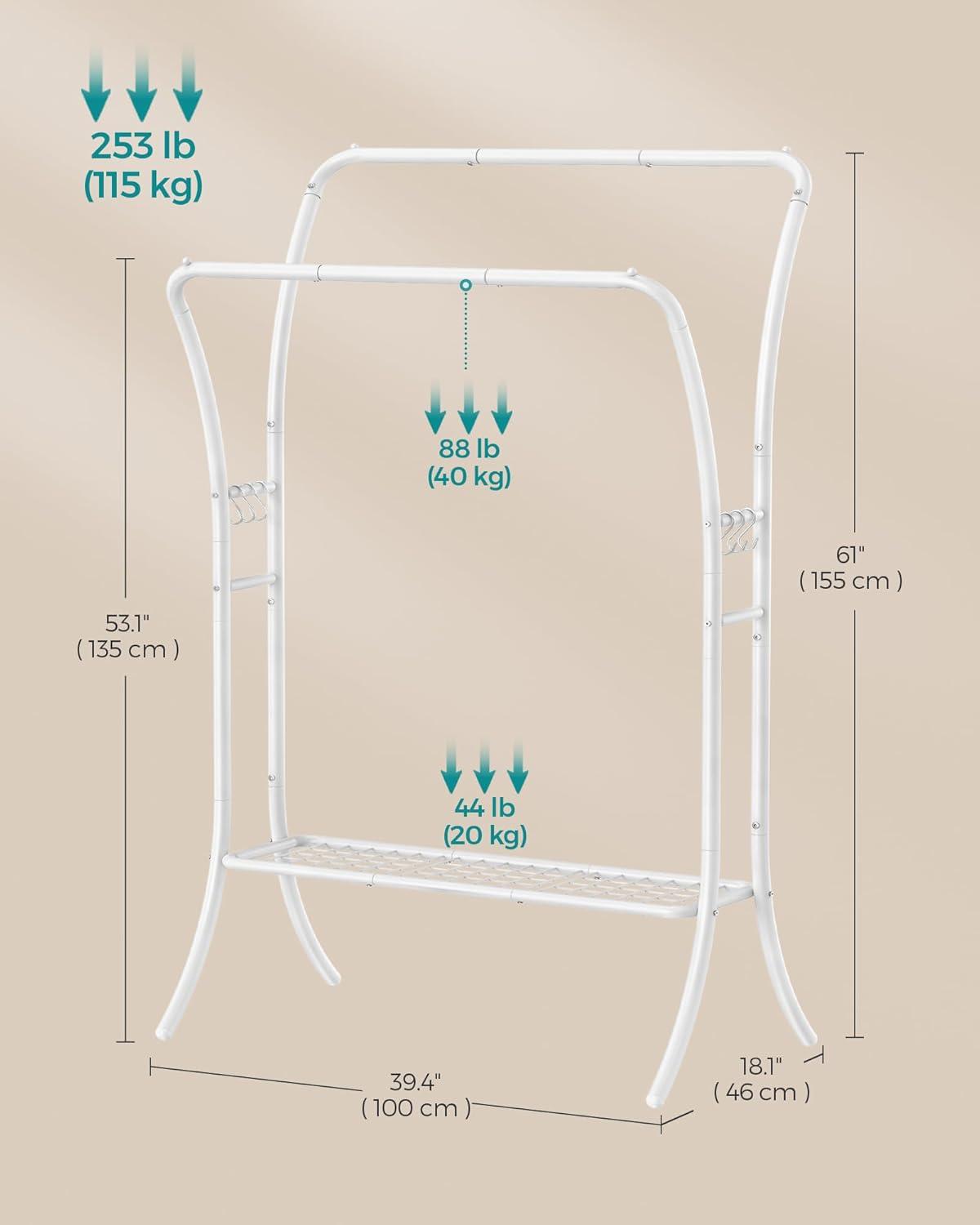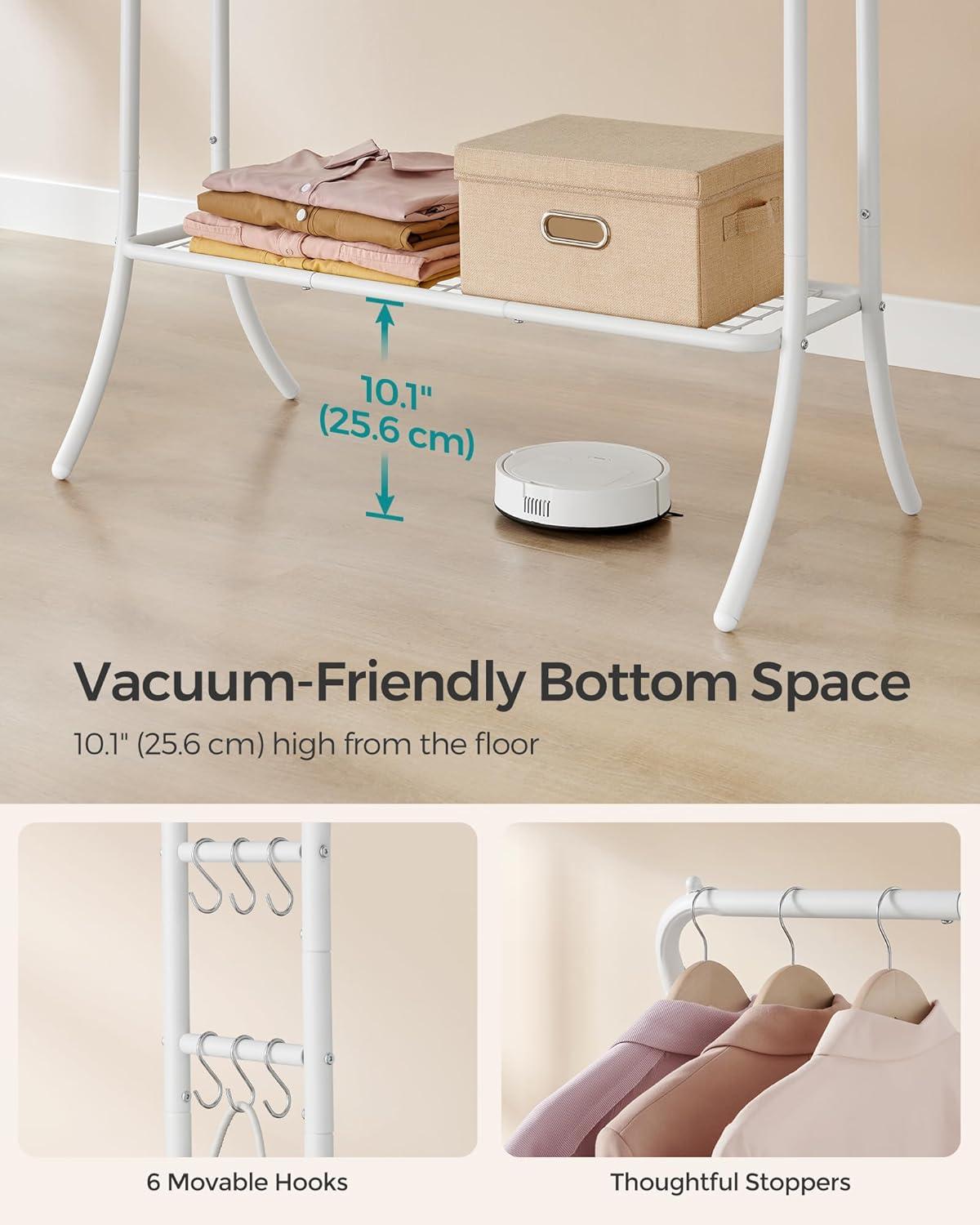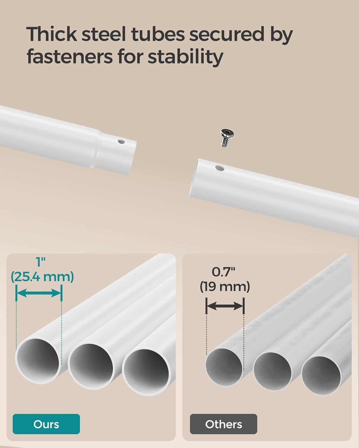 [Strong and Reliable] Crafted with 1″ diameter steel tubes, this clothing rack has a stable frame that can hold up to 253 lb, providing reliable support for your clothing and allowing you to hang them with confidence