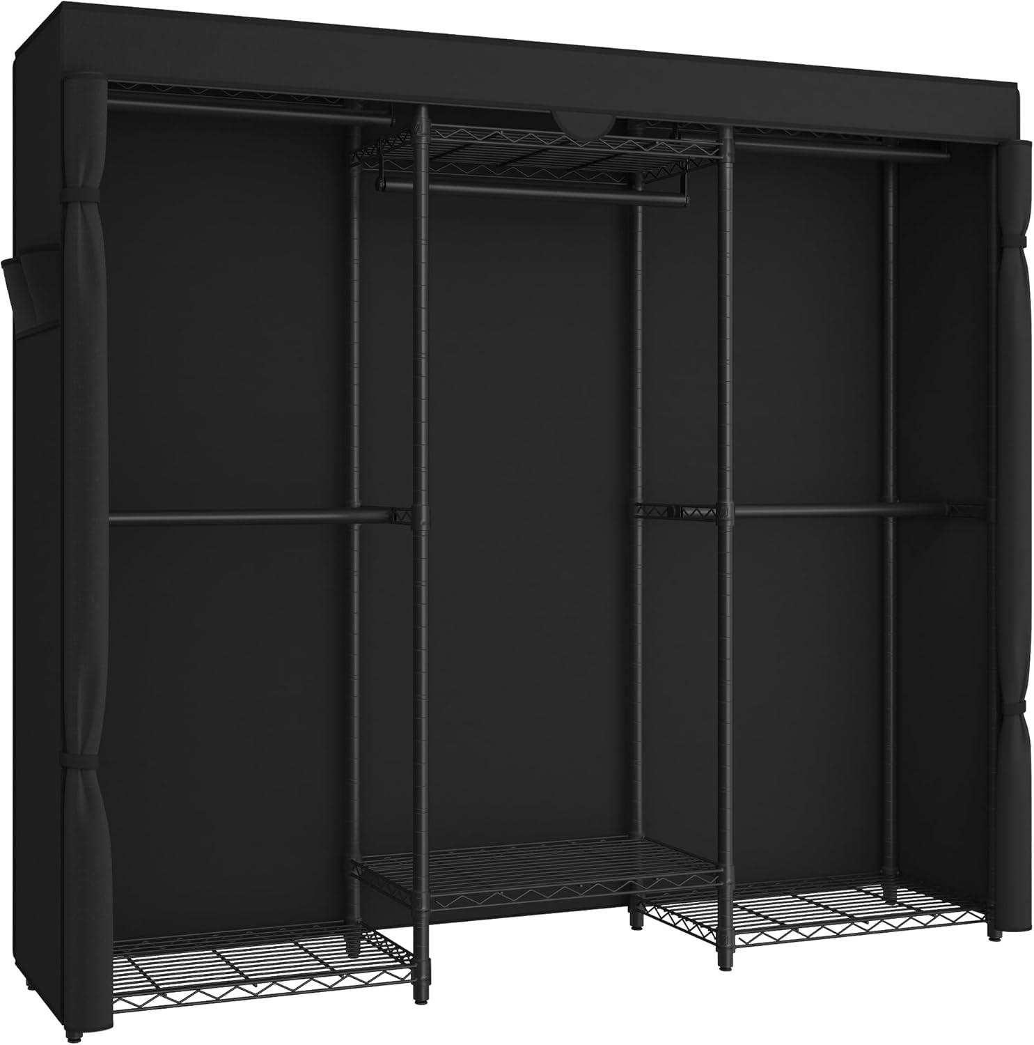 SONGMICS Heavy-Duty Clothes Rack, Garment Rack, Portable Closet, 86.4-Inch Wide Clothing Rack with Adjustable Mesh Shelves and Hanging Rails, Ink Black ULGR434B01(with Fabric Cover)