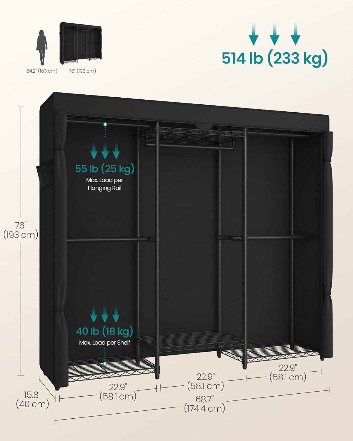 Be the first to review “SONGMICS Heavy-Duty Clothes Rack, Garment Rack, Portable Closet, 86.4-Inch Wide Clothing Rack with Adjustable Mesh Shelves and Hanging Rails, Ink Black ULGR434B01(with Fabric Cover)”