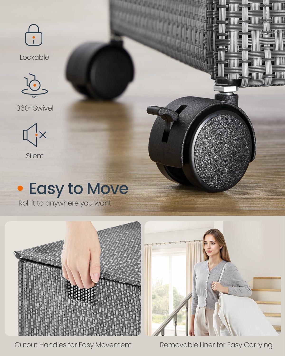 【REMOVABLE AND WASHABLE LINER】The basket includes a removable and washable laundry bag with handles, making it easy to transport your laundry to the washing machine