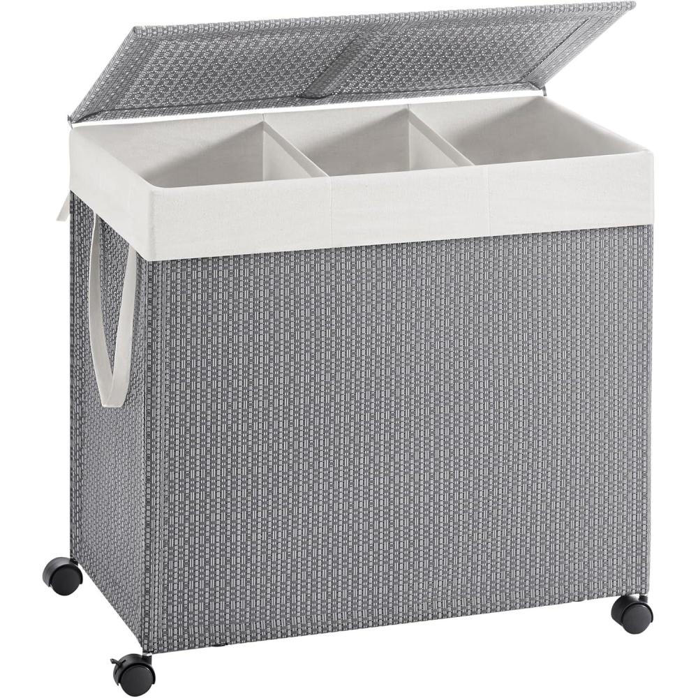Be the first to review “SONGMICS HOME Laundry Hamper with 3 Section, Large 140 L Rolling Laundry Basket with Wheels, Rattan Clothes Basket with Lid, Removable Liner with Handles, Natural Beige and Matte White ULCB602N01(Dove Gray + Matte White)”