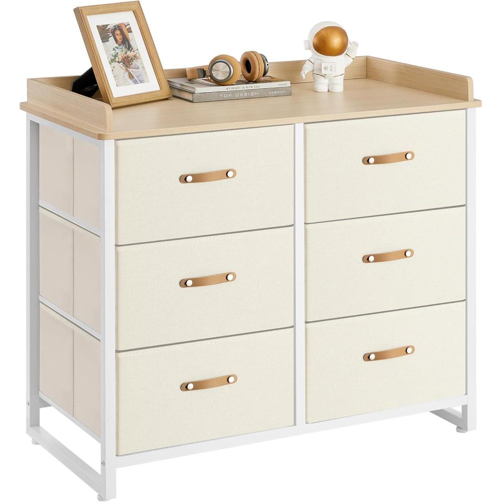 imageSONGMICS Kids Dresser with 6 Drawers Boys Girls Dresser with WaterResistant Tabletop Storage Organizer Cabinet for Bedroom Hallway Beige UGKR101K01Beige
