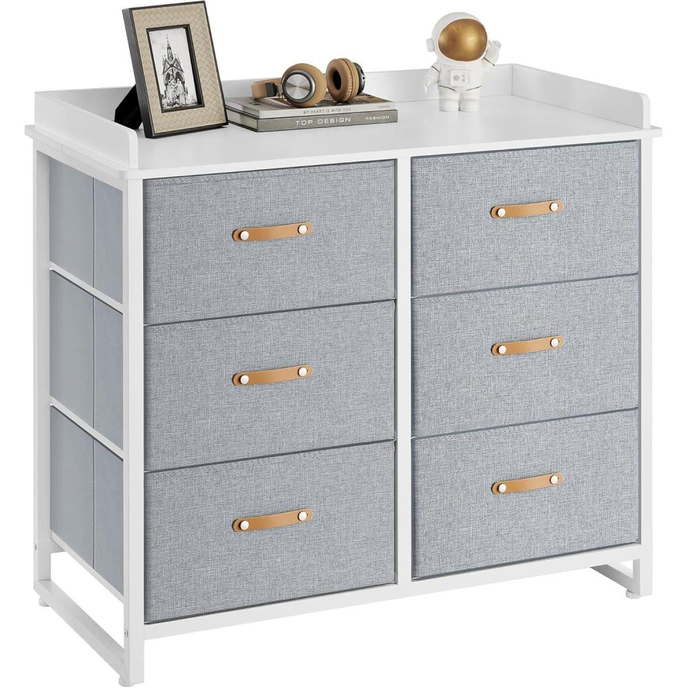 imageSONGMICS Kids Dresser with 6 Drawers Boys Girls Dresser with WaterResistant Tabletop Storage Organizer Cabinet for Bedroom Hallway Beige UGKR101K01Grey