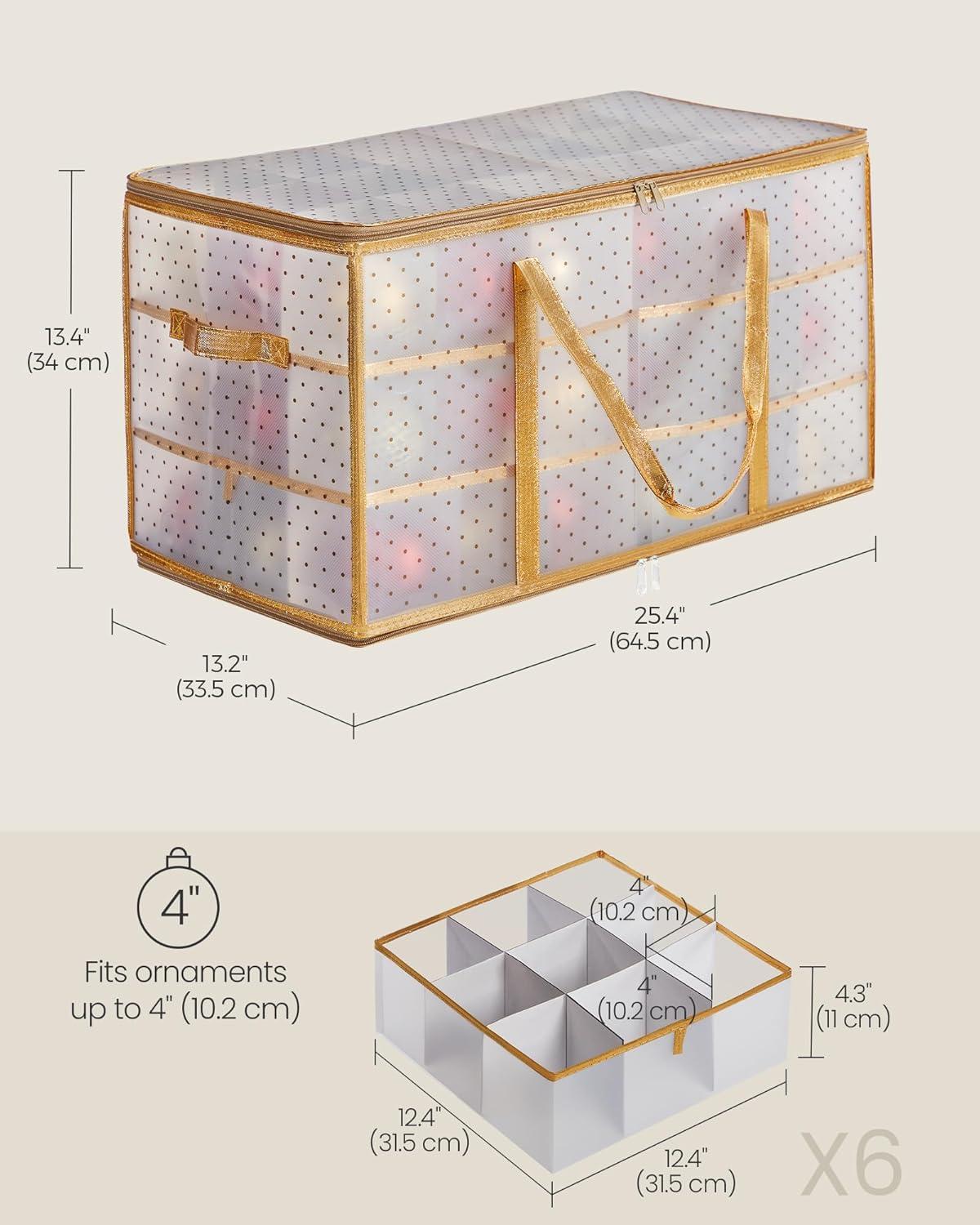 Be the first to review “SONGMICS Large Christmas Decoration Storage Box, 4-Inch 54 Slots, Plastic Christmas Bauble Storage Box with Lid, Dual Zippers, 6 Trays, Side Handles, Sandy Gold URFB030A01(Sandy Gold)”