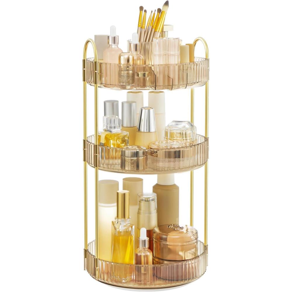 [Customizable and Versatile] Customize the rotating makeup organizer to 1, 2, or 3 tiers based on your needs. Beyond cosmetics, it's also ideal for storing bathroom toiletries, kitchen spices, or office supplies