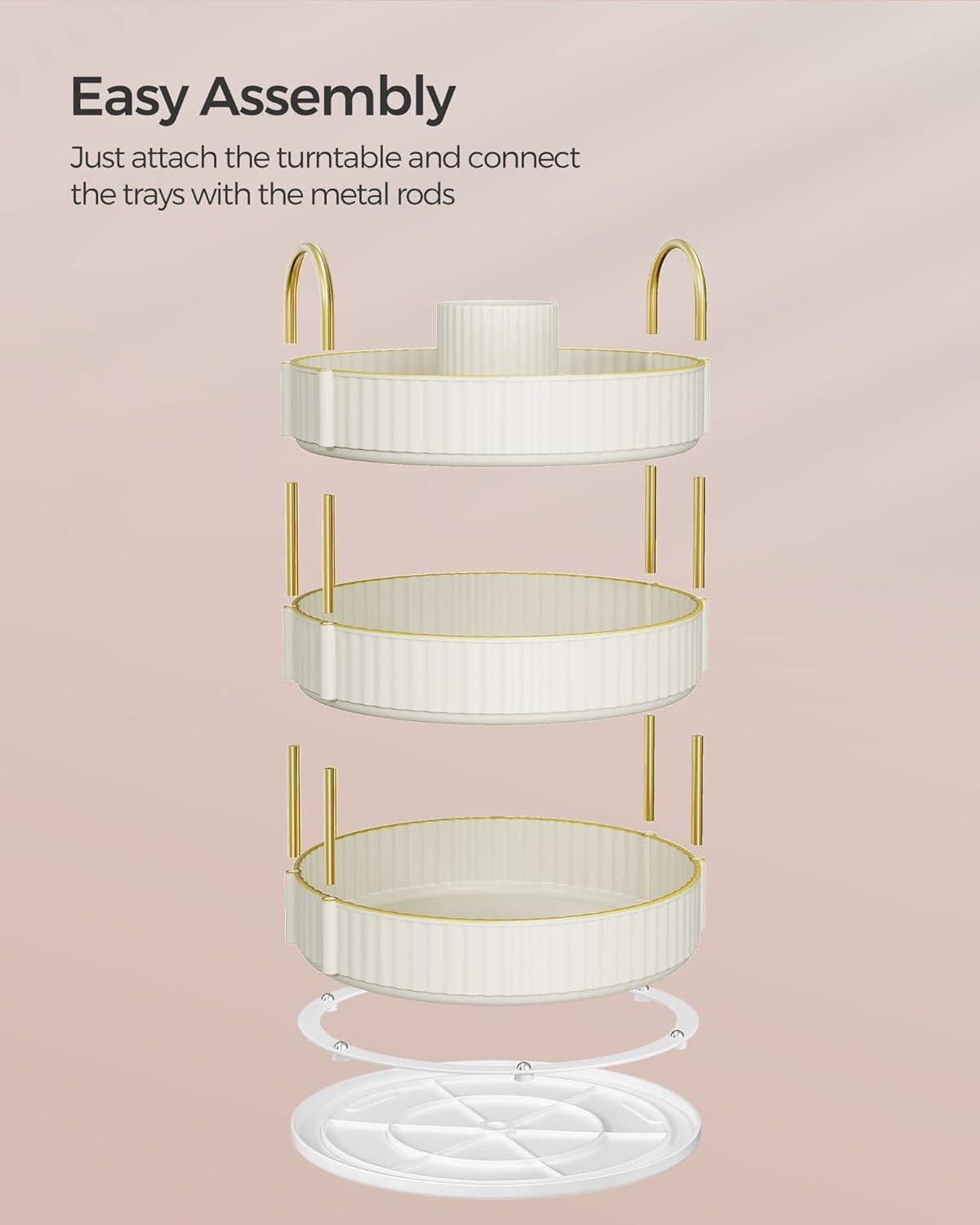 SONGMICS Makeup Organizer, 3-Tier Round Rotating Skincare Organizer Countertop, Customizable, Toiletries Vanity Organizer, Lazy Susan, Christmas Gift, Cloud White UJKA011W01(Champagne Gold)