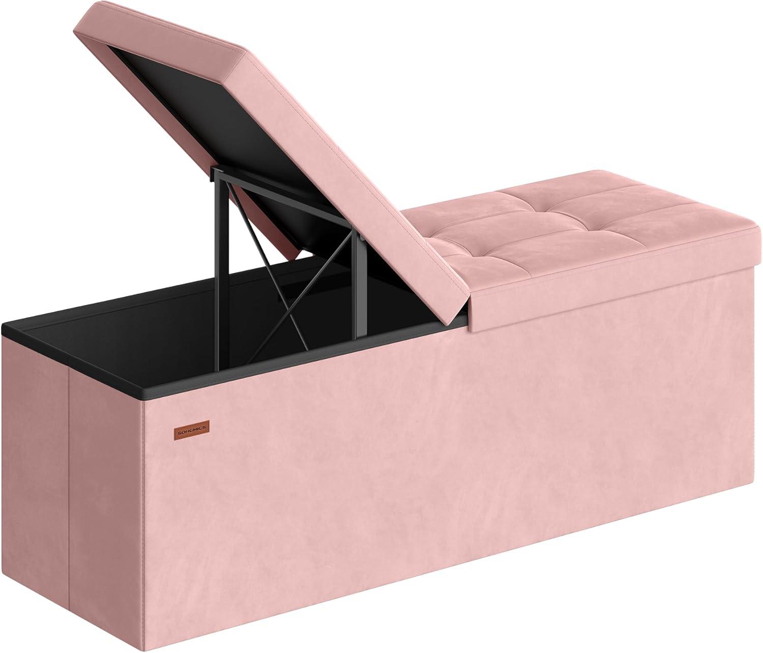 SONGMICS Mazie Collection - 43 Inches Storage Ottoman, Foldable Storage Bench with Flipping Lid, 660 lb Load Capacity, for Entryway, Living Room, Bedroom, Velvet Fabric, Pale Blue ULSF078QQ03(Jelly Pink)