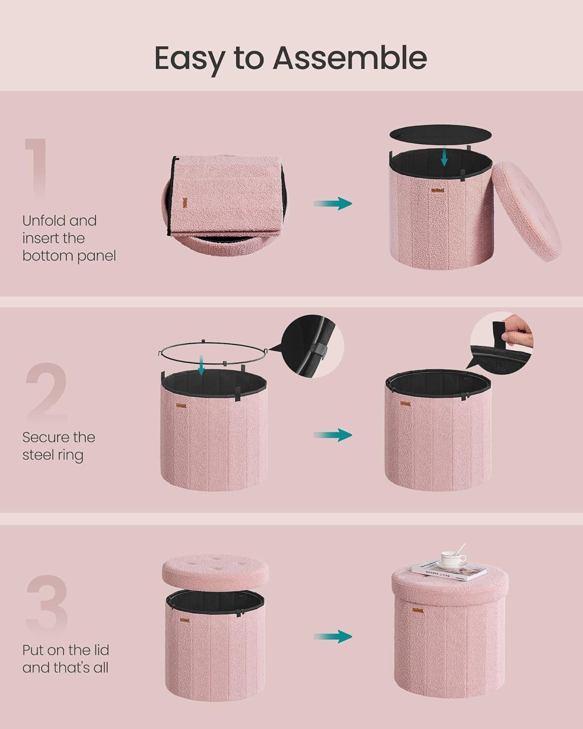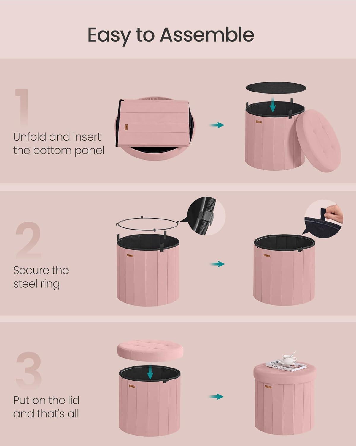 Ample Storage: With a roomy 17.1-gallon capacity (internal size: 17.3″Dia. x 16.5″H), this ottoman easily stores clothes, blankets, and books, keeping your living space organized