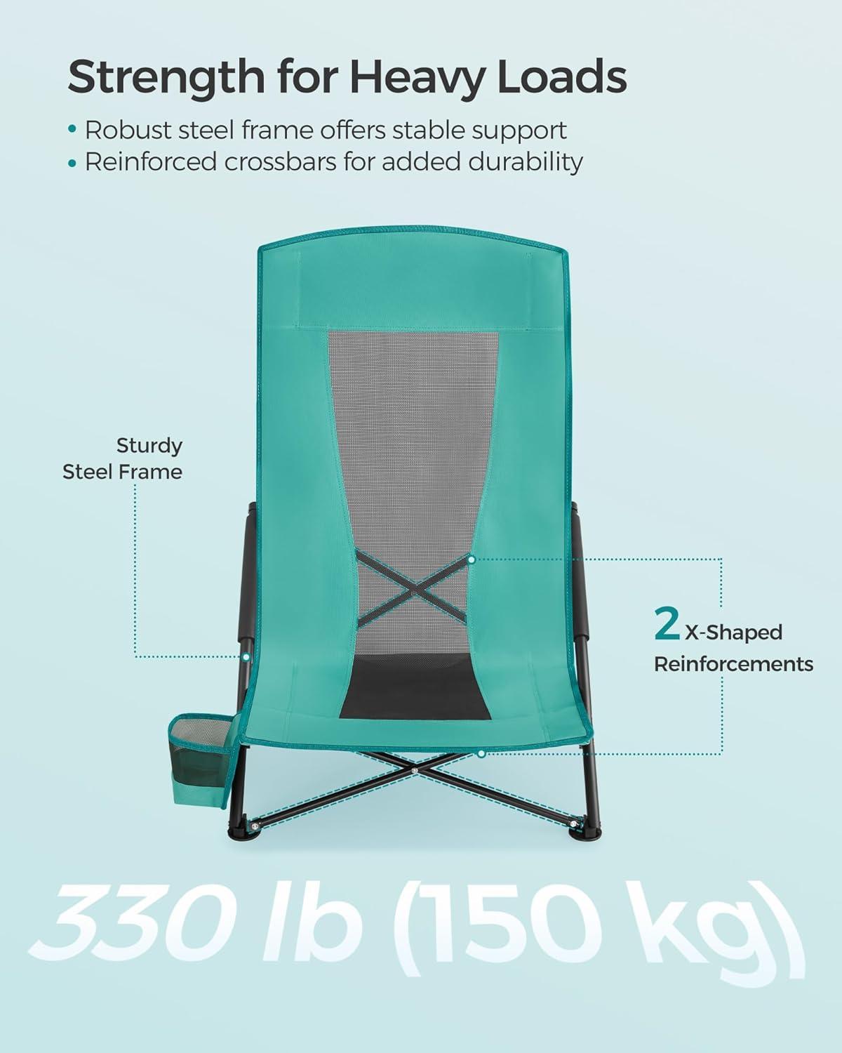 [Built to Last] With its tear-resistant 600D Oxford fabric, each camping chair offers a level of durability that's built for the outdoors. Its sturdy powder-coated steel frame, complemented by extra-large bottom footpads, can easily hold up to 330 lb