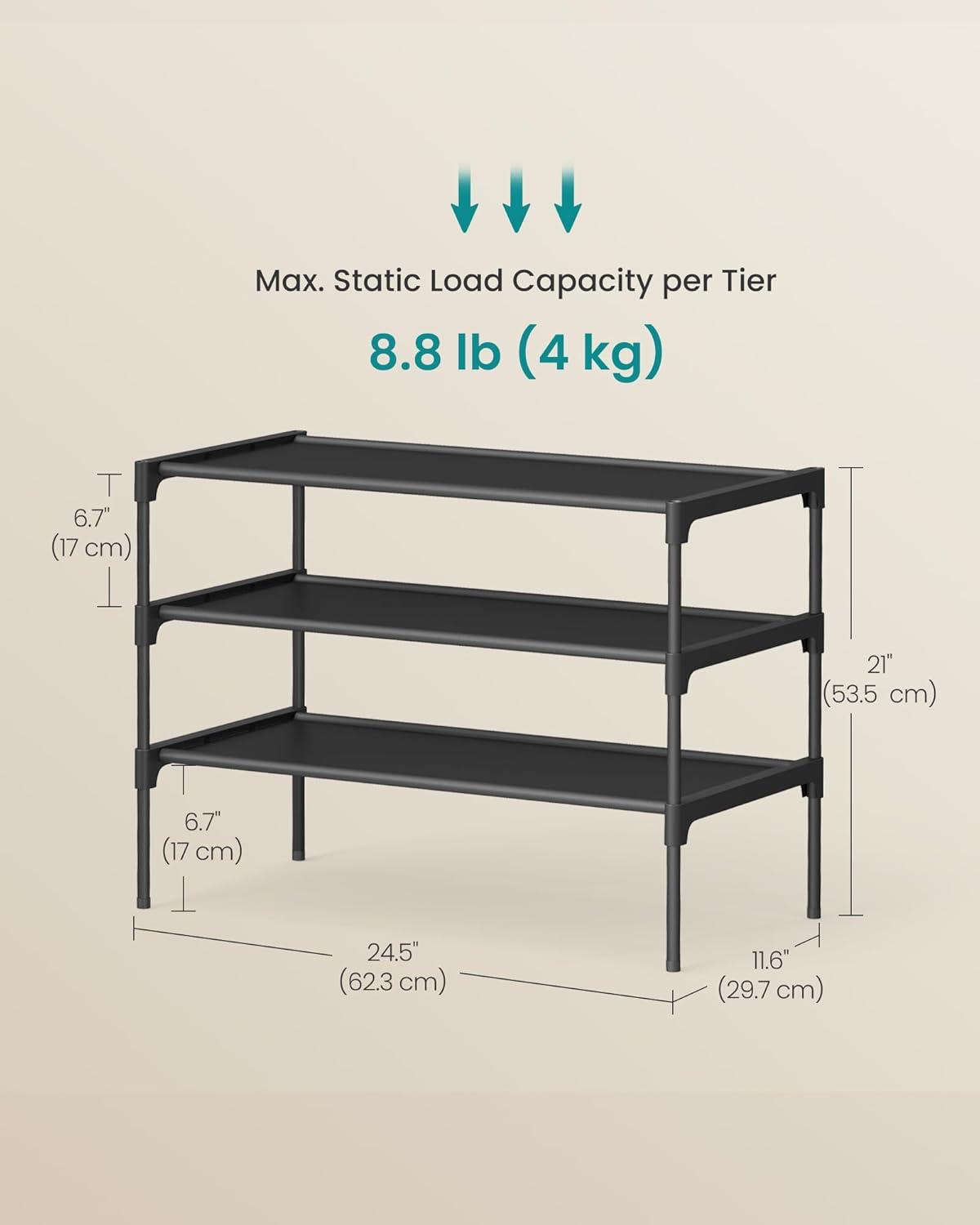 SONGMICS Shoe Rack, 3-Tier Shoe Storage Organizer, Space-Saving, 11.6 x 36.1 x 21 Inches, Entryway, Metal Frame, Non-Woven Fabric Shelves, Ink Black ULSH033BH01S(3 Tiers (24.5"W))