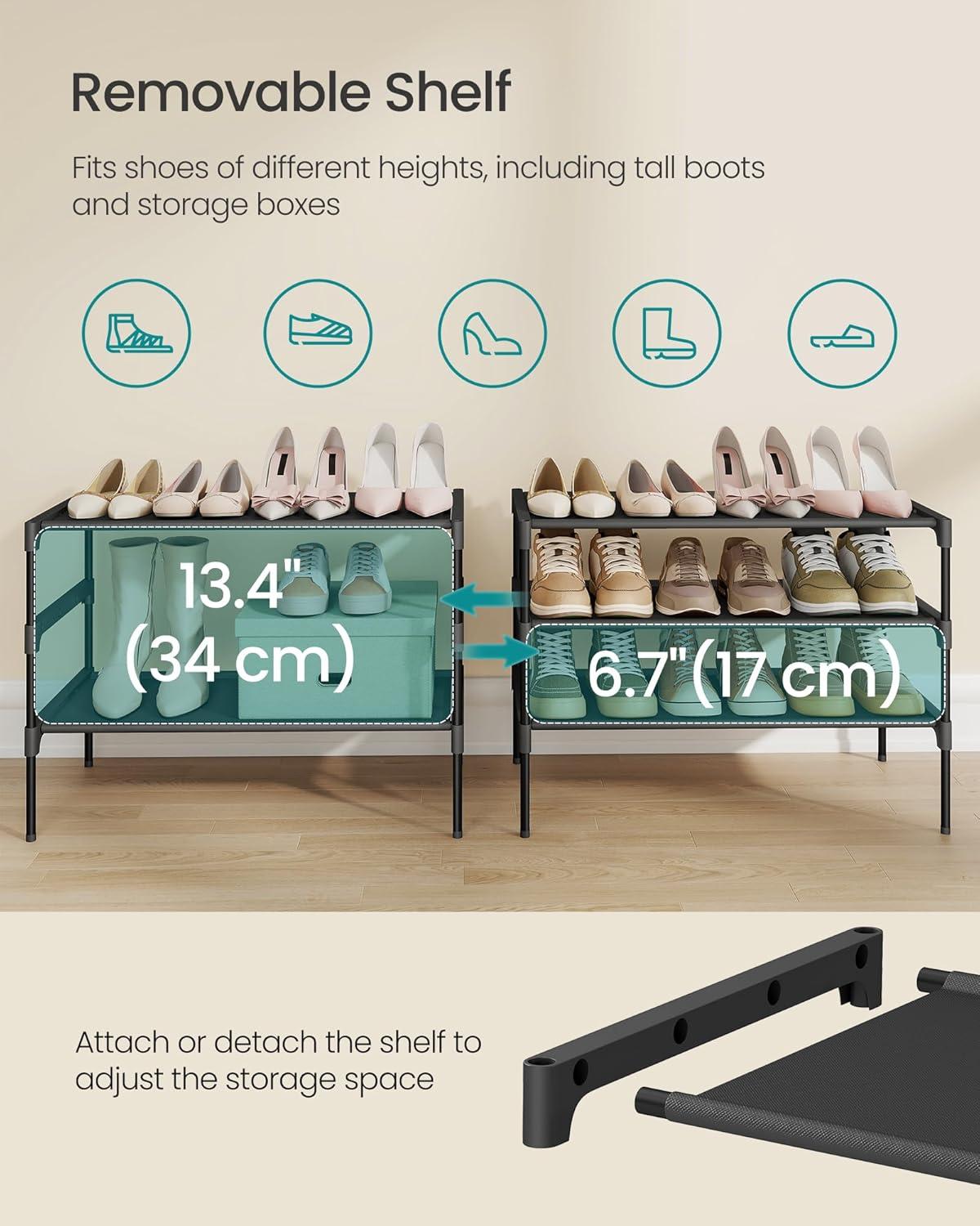 Stackable & Customizable: You can stack 2 units to maximize vertical space, or remove a shelf to create more room for boots, easily adapting to your needs