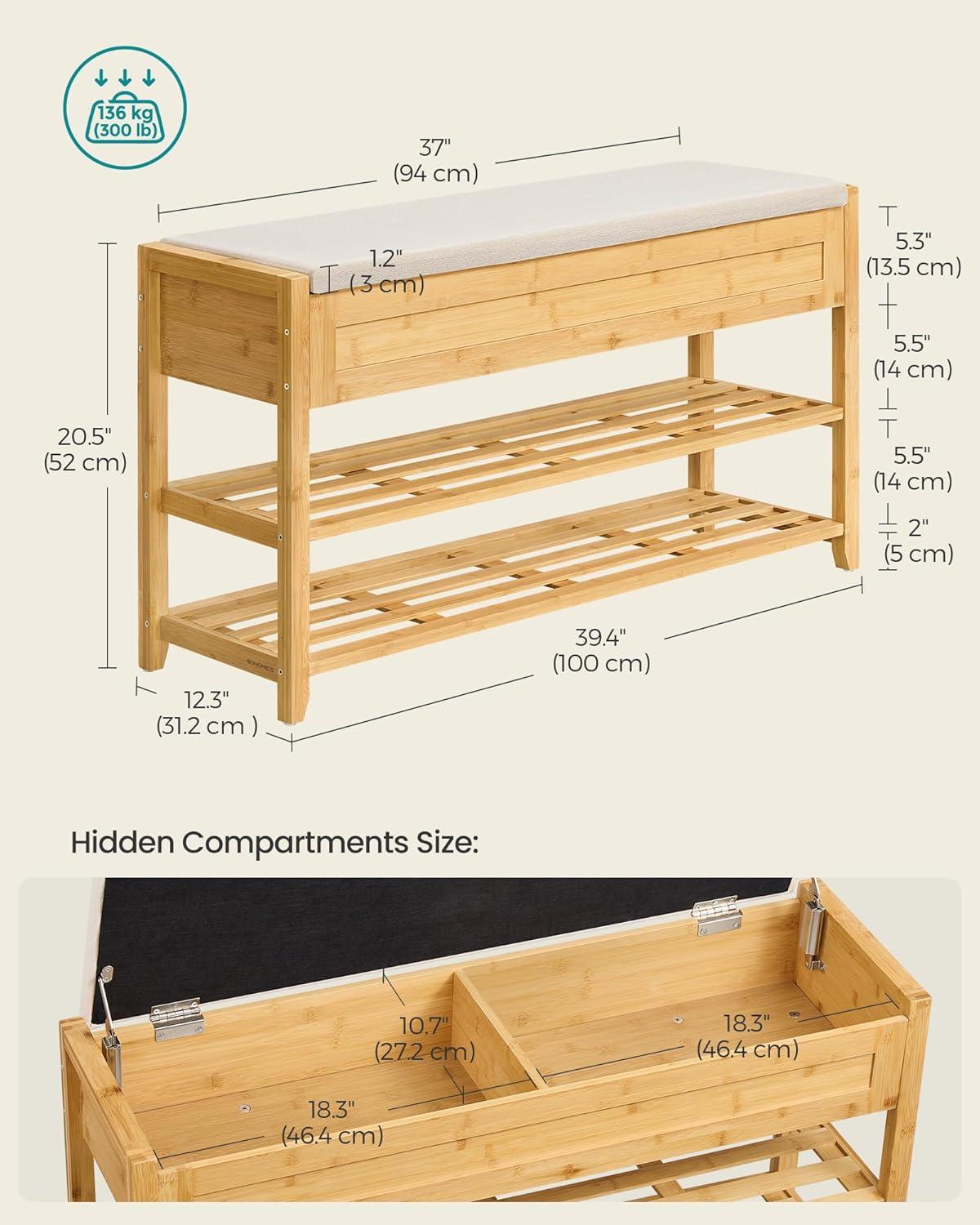 Be the first to review “SONGMICS Storage Bench, Bamboo Shoe Rack, Entryway Furniture, 31.5 Inches Wide, Hidden Storage Compartments, 2-Tier Shoe Shelves, for Entryway, Living Room, Bedroom, Dorm, Ink Black ULSB056B01(Natural Beige)”