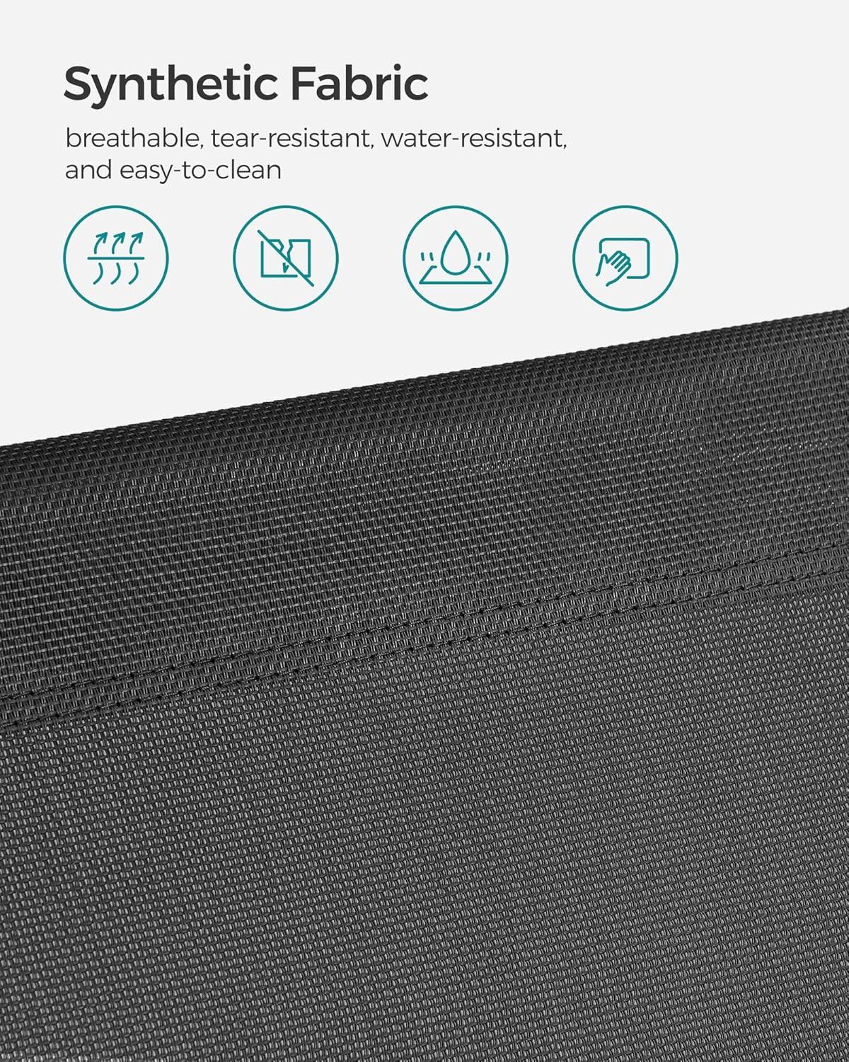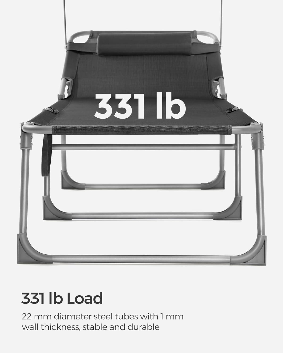【STABLE AND WOBBLE-FREE】This sturdy reclining sun chair, with its powder-coated steel frame and reinforced joints, can support up to 150 kg and remains stable thanks to the anti-slip feet. Sit back and relax by the pool with confidence this summer
