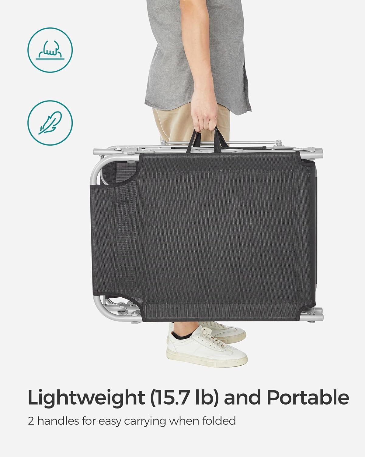 【FOLDABLE AND PORTABLE】Measuring just 17 x 53 x 73 cm when folded, this sun lounger is easy to transport with handles, whether you want to set it up by the pool or on the patio