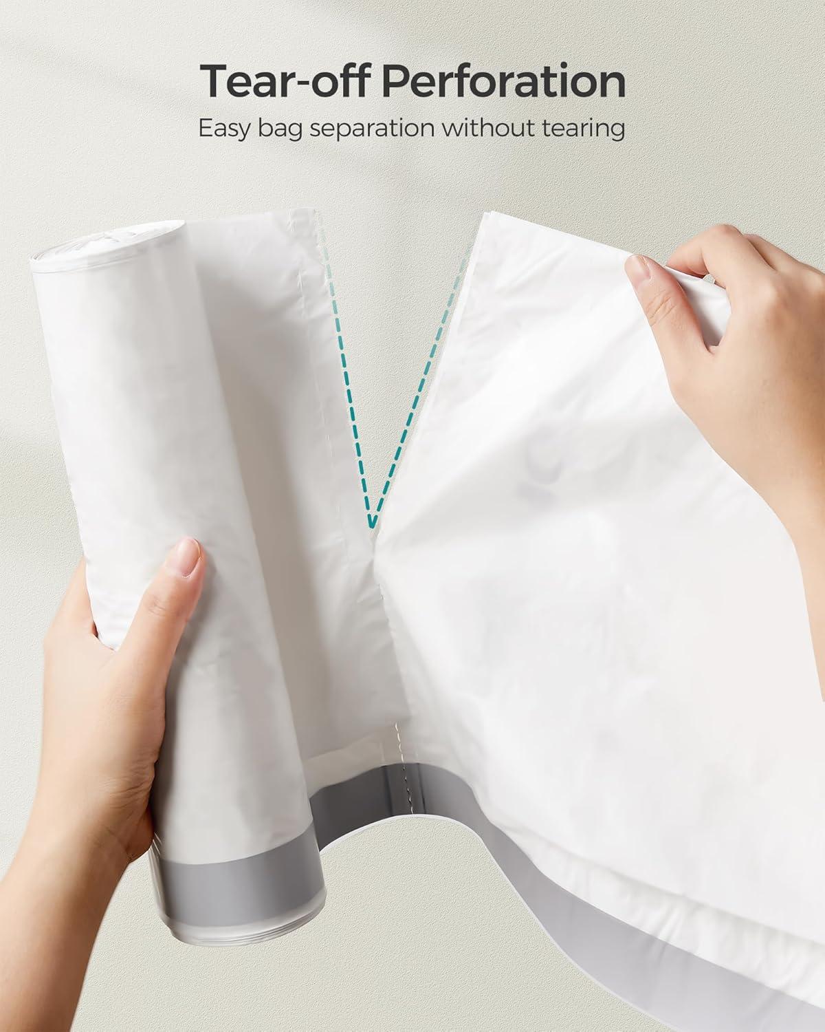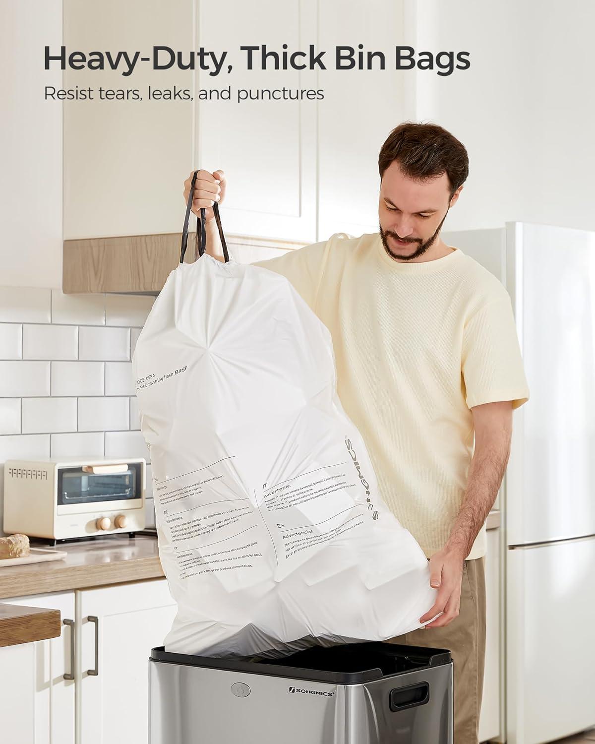 [Convenient Drawstring] The handy drawstrings on both sides of the bag allows for easy closure and removal of the garbage. The drawstrings grip the bin rim tightly without sliding down and effectively seal the bag, trapping any unpleasant smells