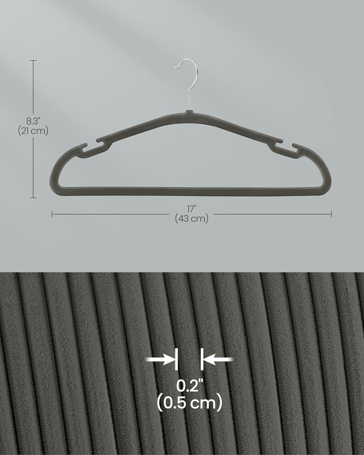 【STRONG SUPPORT】Made from premium ABS plastic and a metal hook, each velvet hanger can support up to 11 lb (5 kg). Feel confident hanging heavy coats and winter clothes without worrying about the hangers breaking